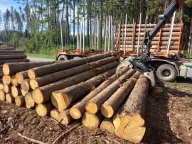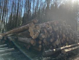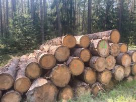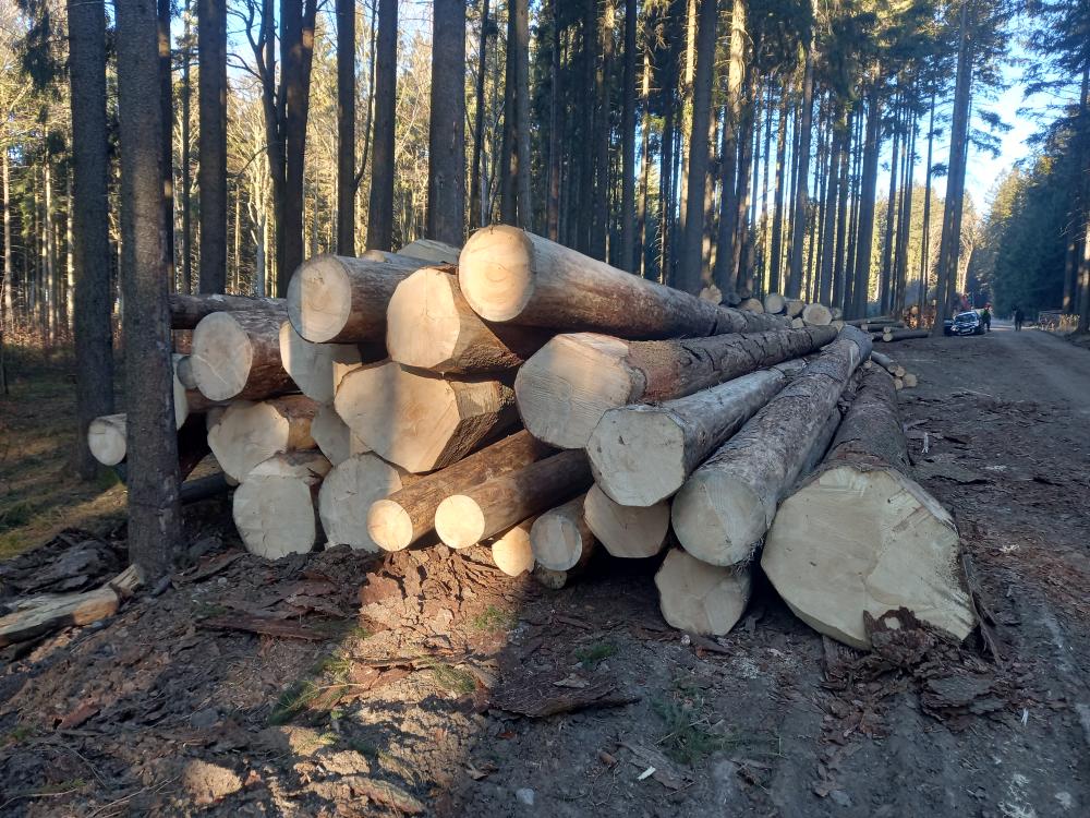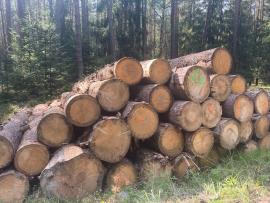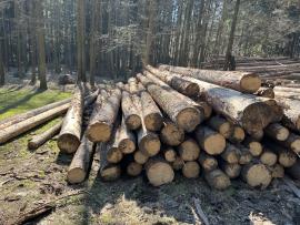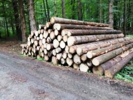 Smreková a jedľová guľatina v dlžkach 10 - 15 m, priemer v strede 17 - 35 cm v objeme cca 70m3, výhľadovo aj viac na OM Lazy pod Makytou, Okres Púchov.