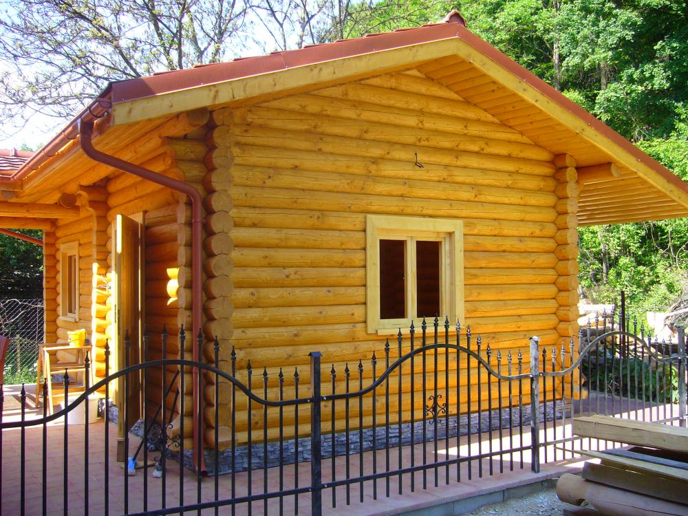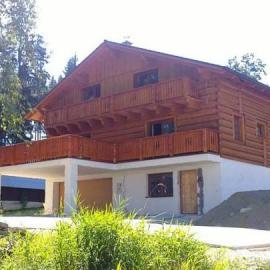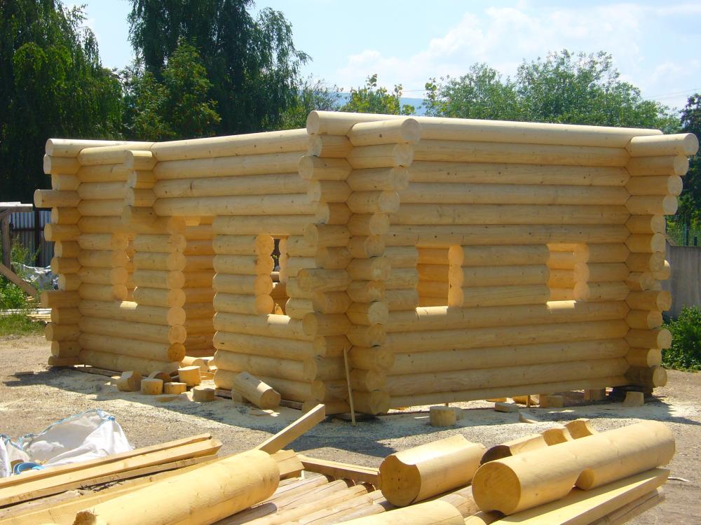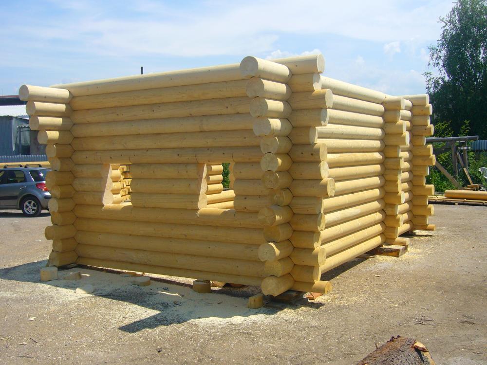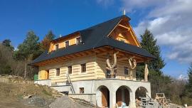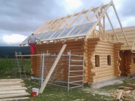 Zrubová chata (skelet) s podkrovim, zast. plocha 4,2x6m z fréz. guľatiny priemer 25cm so sedlovou strechou (krokvy+klieštiny,zafóliované, zalatované, bez krytiny), strop z guľatiny, výrezy na okná, dvere, s montážou, bez základovej platne a dopravy.