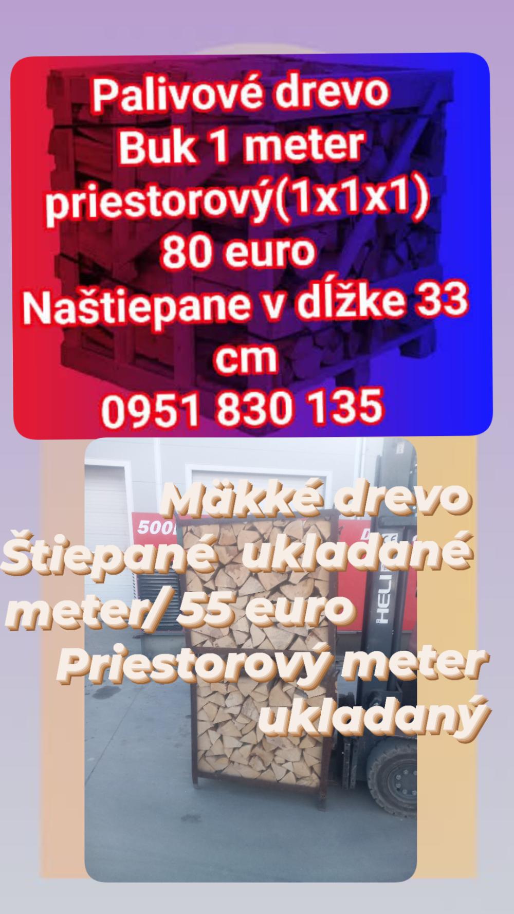 Ponúkame na predaj čerstvé štiepané palivové drevo , tvrdé listnaté dreviny a i ihličnaté dreviny. Dĺžky polien podľa vašej požiadavky - 25/30/33/35/40/45/50 cm . Cena za sypaný meter 56 eur ( tvrdé listnaté ) , 45 eur ( ihličnaté ) - ceny sú bez DPH.