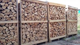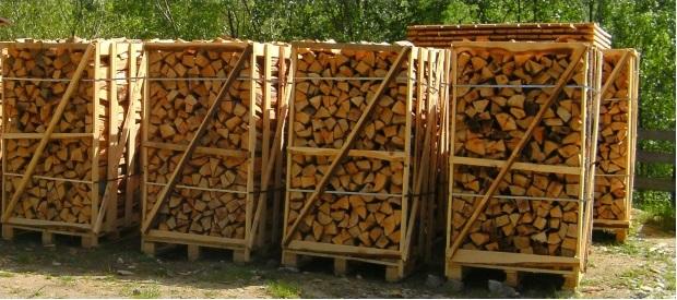 Palivové drevo: ukladané na paletách 1x1x1,8 m.