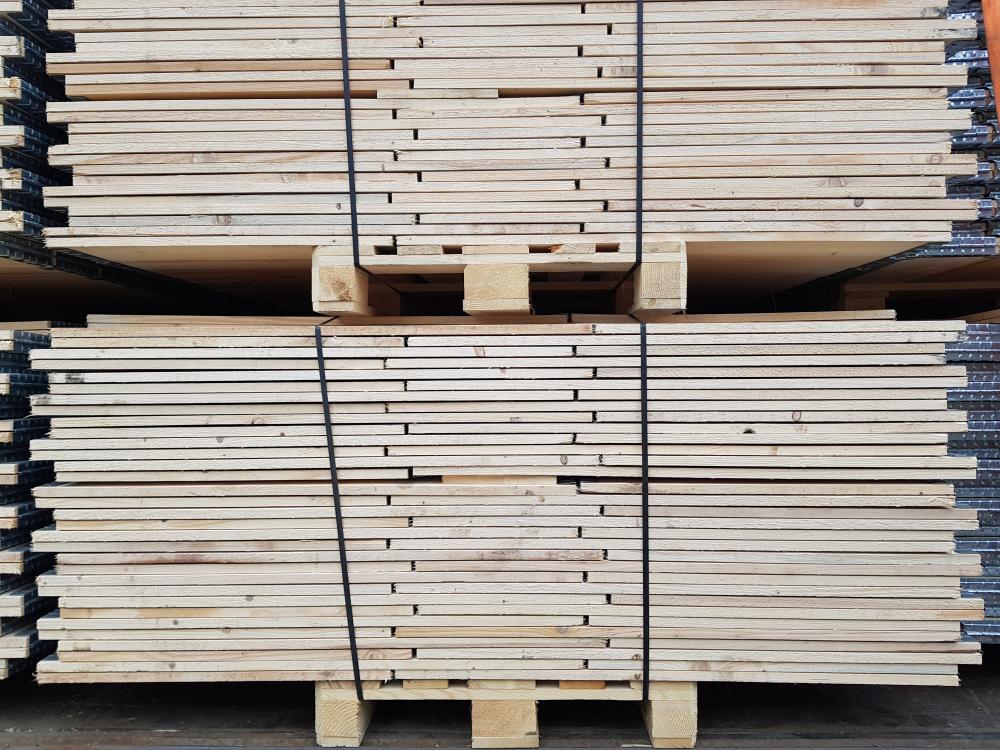 Predám raz použité svetlé veľkoplošné palety. ROZMER 3500mm x 2060mm jedna paleta sa skladá: DOSKA 22mm x 100mm x 3500mm /18ks HRANOL 60mm x 80mm x 2060mm /7ks skladom :600ks na jeden kamión sa zmestí 60ks predaj aj po KS. cena 30€/ks + DPH