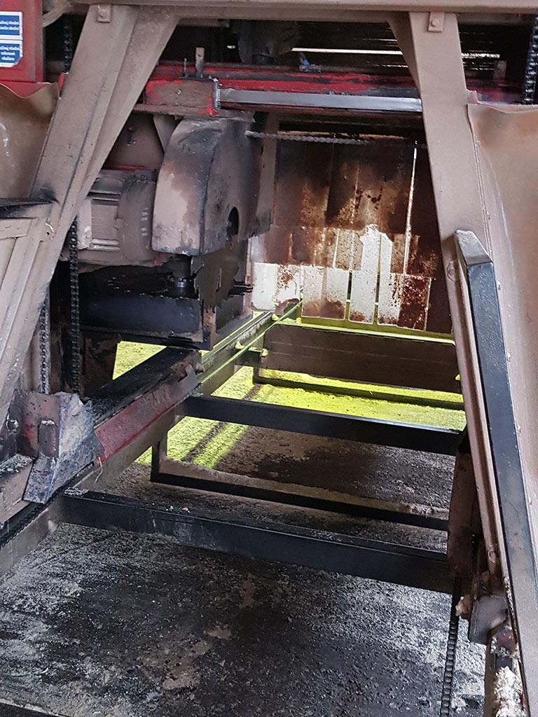 nepotřebuje další stroj jako je tomu u pásové pily,kde se nařežou prizmy,které se musí později rozmítnout na požadované řezivo , další potřebný stroj k pásové pile je omítací pila je potřeba na neosamovaná prkna.Úhlová pila vyřezává přímo z kmene kulatiny požadované čisté řezivo,rozměry řeziva si navolíme na panelu pily a můžeme tak řezat hranoly-vazby-prkna- latě a podobně.Například při řezání hranolů na pásové pile zbývá bok,který se dává do paliva ,ale u této Úhlové pily tomu tak není.Řežeme například hranoly a zbude nám jen boční oblina, na panelu Úhlové pily si navolíme ,aby pila odměřila vzhůru cca 12cm.Odřízne a udělá hranu a tím ještě získáme prkna, nebo například střešní latě .Vše se odvijí od průměru kulatiny. Čím silnější, tím pro tuto pilu lépe.Naše pila je velice rychlá v řezu jen obsluha by mohla být daleko rychlejší,a stačit odebírat od pily řezivo Naše pila je propracovaná a velice výkoná.