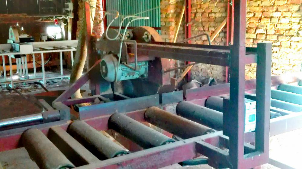 Fréza na opracovávanie guľatiny aj hobľovanie hranolov s 12m dráhou.Guľatina je opracovaná na rovnaký priemer od 14cm do 32cm s možnosťou pozdĺžneho žľabu.Rok výroby 2010. Celkový príkon je 37 kW.