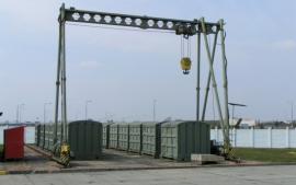 Portálový jeřáb, kozový, kozlíkový jeřáb Nabízíme portálový jeřáb 5000 kg, r.v.1982, součástí je kompletní dokumetace + rev. zpráva ,40 m kolejnic, spojovací materiál + elektroinstalace vč ovládacích kabelů a návodu na složení jeřábu. Technické údaje: Výška: 8400 mm Výška zdvihu - 6500 mm Hmotnost: 6 500 kg Nosnost: 5 000 kg Rozchod: 9 000 mm Rozvor: 4 000 mm. Uvedená cena nezahrnuje DPH. Revizi po smontování zajistíme.