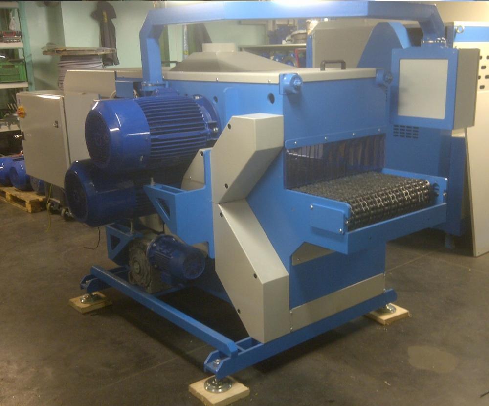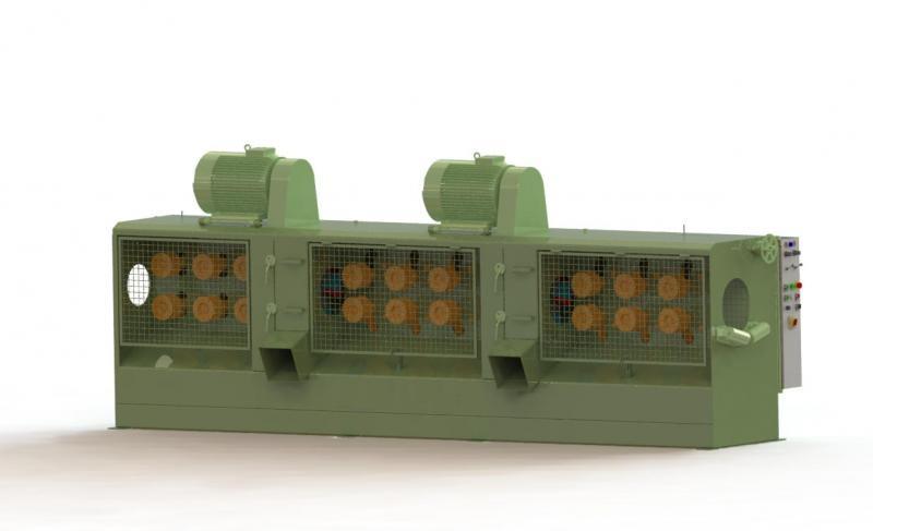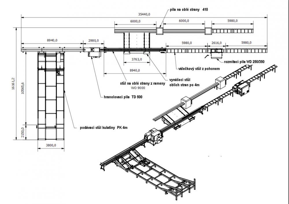 ROZMÍTACÍ PILA D-200/240/M prořez pily je 200mm.K dosažení větší výšky řezu (200mm) ve stroji jsou použity dvě hřídele umístěné jedna nad druhou přesunuté proti (vůči) sobě v linii kolmě (svisle) k ose válců. Obě hřídele jsou upnuté na suportech, které umožňují polohování válců ve svislé linii.Díky tomu můžeme využít různých průměrů pil (200/315mm) v závislosti od tloušťky řezaného materiálu. Mechanizmus posuvu se skládá z 3 pevných (stálých) dolních válců a také ze 2 horních přenášejících válců – všechny mají pohon od převodového motoru za pomoci mechanizmu skládajícího se jak z řetězových převodů tak i zubových převodů.Regulace těsnění horních válců probíhá za pomoci mechanizmu zvedání (přenášení) těsnění. Pila neobsahuje v základu pilové kotouče , pilové kotouče možnost dokoupit samostatně . Za příplatek.. Motory 2 x 15,kW, 2 x 22,kW, 2 x 30,kW. Podávací válečkové stoly délka dle přání zákazníka Více zde: http://www.drevoobrabeci-stroje.eu/products/rozmitaci-pila-d200-240-m-prorez-180-200mm/