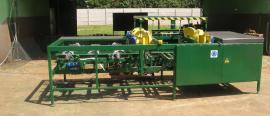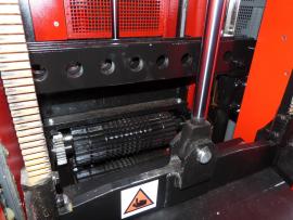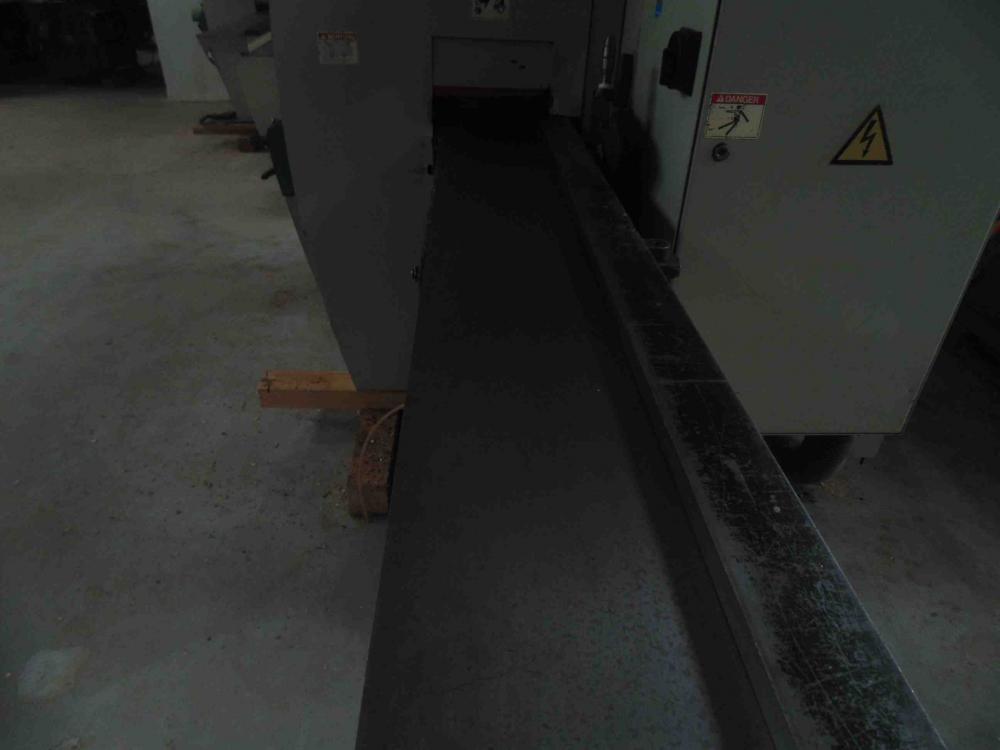 Rozmítací Pásová Pila 6-hlavicová horizontální BC6-120 je určena k podélnému řezání dřeva v podobě prizem a hranolů.Pila najde uplatnění na pilách a v paletovém průmyslu.Řezací systém má šest pilových hlavic uložených horizontálně v závislosti na předpokládané tloušťce řezání prizmy.Pily 2 a 4 - hlavicové jsou vybaveny podávacím pásem u šestihlavicové pily je na podávacím stole instalován řetěz. Výkonnost pily závisí na parametrech zpracovávaného materiálu ( prizmy) a tloušťce řezaného prkna a je to průměrně 5 m3 za hodinu. Parametry pily: * maximální výška prizmy 280 mm, * maximální šířka prizmy 200 mm, * řezná délka řeziva od 500 do 2 500 mm,za příplatek -prodloužení. * přikon motorů 6 x 5,5kW, * příkon motoru podávání 1,1 kW, * celkový příkon 35kW, * napětí 400V (3 fázove), * rychlost posuvu podávaní 4-20 m/min., * vertikální posuv podavače řízen plynule * délka pilového listu 4004 mm * celková délka stroje 9000 mm * šířka pily 1700 mm, * výška pily 2100 mm, * váha stroje 3200 kg, Za příplatek motory 7,5kW Více zde: http://www.drevoobrabeci-stroje.eu/products/rozmitaci-pasova-pila-6-hlavicova-bc6-1200/