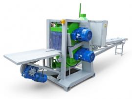 Linka série OD-25 je určena k plně automatickému ořezávání desek. Linka obsahuje -Příčný řetězový podavač – na kterém dochází ke vstupnímu vyrovnání a uspořádání desek.Podavač sloužící k vycentrování, který je zodpovědný za vyměření a uspořádání desky v ose ořezávání.Odřezávačka – vybavena dvěma soustavami, které jsou symetricky roztahovány, každá soustava má 6 pil poháněných motorem 15 kW.Třídící a přepravní sběrač – ten odděluje prostřední materiál od krajních částí, které automaticky přepraví na jednu stranu stroje do kontejneru.Linka provádí automatické měření a nastavení opracovávané desky a poté propočítá nejoptimálnější šířku desky dle určených kritérií. Operátor může nastavit např.: Šířku nejvíce žádané suroviny - systém automaticky vybere, jakým počtem pil má být deska zpracována (díky tomu můžeme z velmi širokých desek nařezat jednu o šíři 20 cm nebo dvě o šíři 12 cm)Práh ostré hrany – důležitá součást optimalizace během opracovávaní shodných desek - pokud je konec desky o hodně užší než její zbytek, linka vyřízne desku takovým způsobem, abychom obdrželi nejlepší možnou šíři celé desky (konec zůstane neodříznutý)Množství aktivních pil – parametr umožňující vyřezávání např. latí, částí z okrajů desky.Rozměr výchozí desky může být zaokrouhlený na konkrétní hodnotu např. na celé centimetry. Systém je dodatečně vybaven měřením tloušťky opracovávaného materiálu a díky tomu automaticky nastavuje rychlost řezání a propočítává množství (délku a objem) obdržené suroviny. Technické údaje: Tloušťka 20 - 80 mm Šířka 100 - 650 mm Délka odměřování 2 - 6 m (lze vybrat 1,8 - 5 m nebo 2 - 8 m) Maximální délka obřezávání 6,5 m (lze vybrat 6 nebo 8,5 m) Maximální šířka výchozího materiálu Pro vnitřní pily 550 mm Pro vnější pily 2 x 160 mm (np. 2 x 2 x 80 mm) Elektrické 400 V 80 A (výkon 42 kW) Vzduch 6 bar 240 Nl/min Kapacita: 25 mb/m u desky o tloušťce od 20 do 32 mm Více zde: http://www.drevoobrabeci-stroje.eu/products/orezavaci-automaticka-linka-od-25/