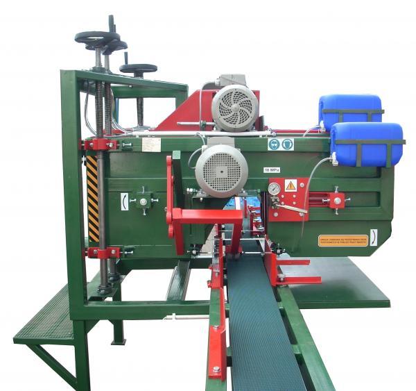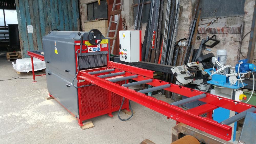 Pila umožňuje rozřezání prizem nebo hranolů. Pila se vyskytuje ve verzi od jedné hlavice do tří řezacích hlavic, což umožňuje získat max 3 fošny nebo hranolů během jednoho řezu,podstatně zvyšuje výrobu, úspěšně nahrazuje více násobnou pilu při velmi malém řezu 2 - 2,5 mm. Výkon hlavních motorů 1,2 nebo 3 x 5,5 KW Šířka podavače 250 mm Max. výška zpracovávané prizmy 320 mm Max. šířka zpracovávané prizmy 220 mm Délka prizmy od 500 mm do 3000 mm je možné prodloužit Rychlost posuvu podavače 0-25 mb/min V nabídce máme i jednohlavou nebo dvouhlavou Výkon stroje závisí na velikosti zpracovávaného materiálu a tloušťce řezaného materiálu. Průměrně je to 1,5 – 3,5 m3 hotového výrobku za hodinu. Více zde: http://www.drevoobrabeci-stroje.eu/products/rozmitaci-pasova-pila-rw/