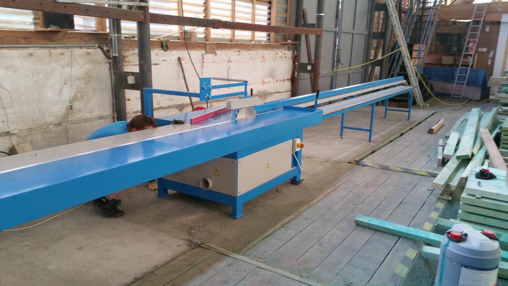 Kombinovaná Kotoučová pila PP-410 KBA zpracovává oblé strany.Ořeže oblé strany po bokách ,čímž získáme rovné strany a vytěžíme další materiál na zpracování ,následně rozřežeme na prkna získáme hotový produkt.Dva stroje v jednom . Tento stroj má široké využití v mnoha pilařských závodech. Díky kvalitní konstrukci zařízení a jeho funkčnosti se nám rychle vrátí náklady na jeho pořízení, a navíc se omezí ztráty na surovině na nezbytné minimum. Spolehlivost vykonávané práce a bezpečná obsluha pily jsou ukazatelem vysoké výkonnosti. DODATEČNÉ VYBAVENÍ: válečkové odběrné stoly bez pohonu,prodloužení řezu ,kontrolka zatížení motoru,kotoučové pily,lasery možnost výběru výkonu motoru Toto zařízení může být částí Technologické Linky k opracování dřeva v sestavě s jinými stroji. Seznamte se prosím s námi nabízenými řešeními. Poradíme Vám s rozestavením a s parametry všech zařízení přesně dle potřeb zákazníka. PARAMETRY: - min. délka řezané prizmy – 1100 mm - max. délka řezané prizmy – 1800 mm - max. tloušťka řezané prizmy – 120 mm - max. šířka vkládaného materiálu – 500 mm - max. šířka hotové desky – 140 mm - min. šířka hotové desky – 70 mm - průměr pilového kotouče – 425 mm - výkonnost – 14 m/3, za 8 hod - výkon motoru pravého – 3,5 Kw - výkon motoru levého – 3,5 Kw - výkon motoru vodorovné pily – 11 Kw, - výkon motoru posuvu – 0,75 Kw, - rychlost posuvu (plynná regulace) – 0:20 m/min, - napětí napájené sítě – 3x400 V, - celkem Kw – 18,75 . - délka – 6900 mm, - šířka – 1400 mm, - Výška– 1380 mm, - Váha stroje – 1160 kg Typ - 1 s motory 2x4,7 + 15kw Typ - 2 2x5 +18kW za příplatek prodloužení řezné délky dle přání zákazníka. Více zde: http://www.drevoobrabeci-stroje.eu/products/kotoucova-pila-na-oble-strany-pp-410-/