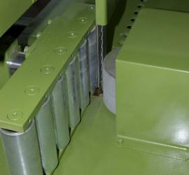 Elektricky řízené vychýlení horního kola,Pulzující prokluzy, které vytlačují pilu.Regulovaná rychlost pásu linky,Centrální mazání posuvných částí,