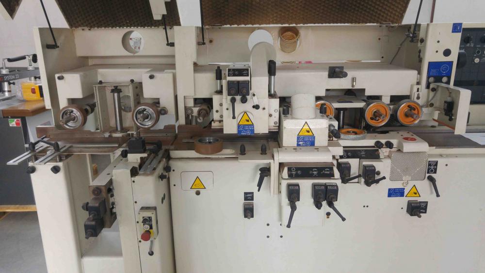 Predám profilovaciu štvorstránku kompaktného rozmeru s dĺžkou iba 4 metre SCM Compact 23KS, využitie pre hobľovanie aj profilovanie, 5 hláv: spodná-pravá-ľavá-horná-univerzál. Max. šírka 230mm, max. výška 130mm, priemer vretien 40mm, plynulá regulácia posuvu, prevod cez kardan. Každé vreteno má samostatný motor. Systém centrálneho mazania. Hmotnosť cca. 2300kg. Profesionálny stroj, výborný stav a výbava, široké možnosti využitia. Rok 2001, výborný stav. Cena dohodou. Ponuka platí do vymazania inzerátu.