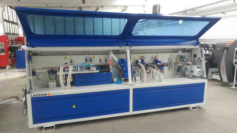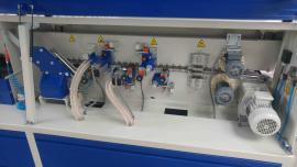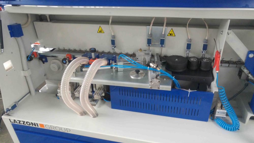 Predám novú olepovačku hrán s predfrezom Lazzoni Group K550. Konfigurácia: predfrez - olepenie hrany - kapovanie - frézovanie - rádiusové cidliny - plošné cidliny - leštiace kotúče. Dĺžka stroja iba 3850mm, hmotnosť 1050kg, príkon cca 8kw. Hrana hrúbky 0,4-3,0mm, výšky 8-52mm, minimálny dielec iba 80x150mm. Nový stroj predvádzací model stále k dispozícii. Cena podľa konfigurácie začínajúca na 13.000 Euro bez DPH.