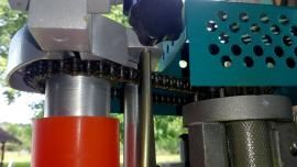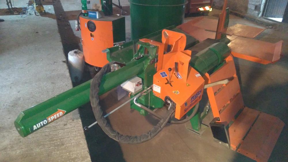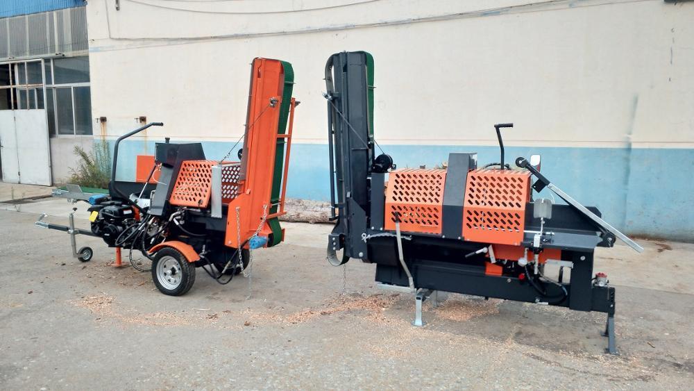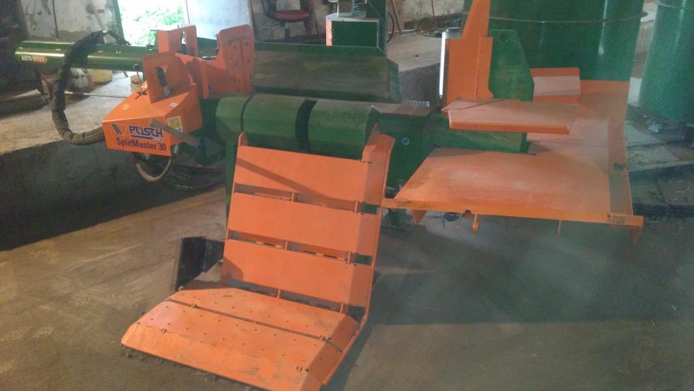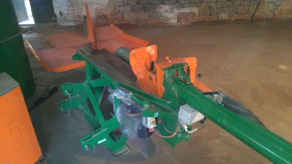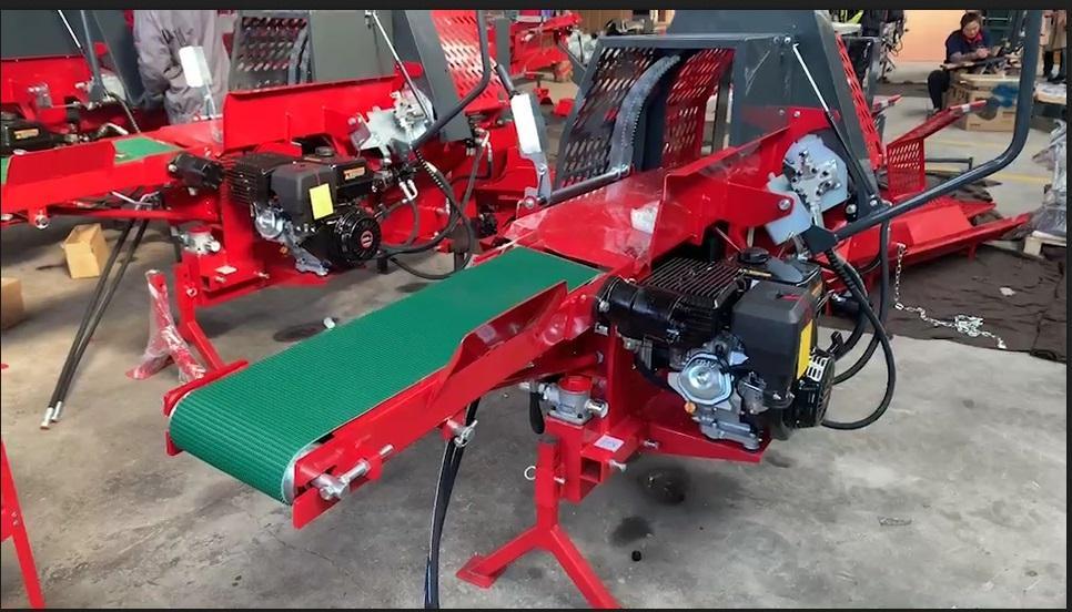 Toto zařízení během jednoho výrobního cyklu spojuje řezání dřeva pomocí řetězové pily zároveň s jeho rozštípání na polena pomocí pásového přepravního zařízení.