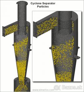 Cyklóny sú odlučovače využívajúce odstredivú silu pre oddelenie väčších častíc a prachu od vzduchového prúdu. Ich výkon závisí na vstupnej rýchlosti častíc, ich hustote a zrnitosti a samozrejme na geometrii telesa cyklónu. Napr. pre surové piliny môže účinnosť separácie byť až 99,9%, účinnosť je menšia pre jemný prach, kde veľkosť častíc sa pohybuje okolo 5 mikrónov.