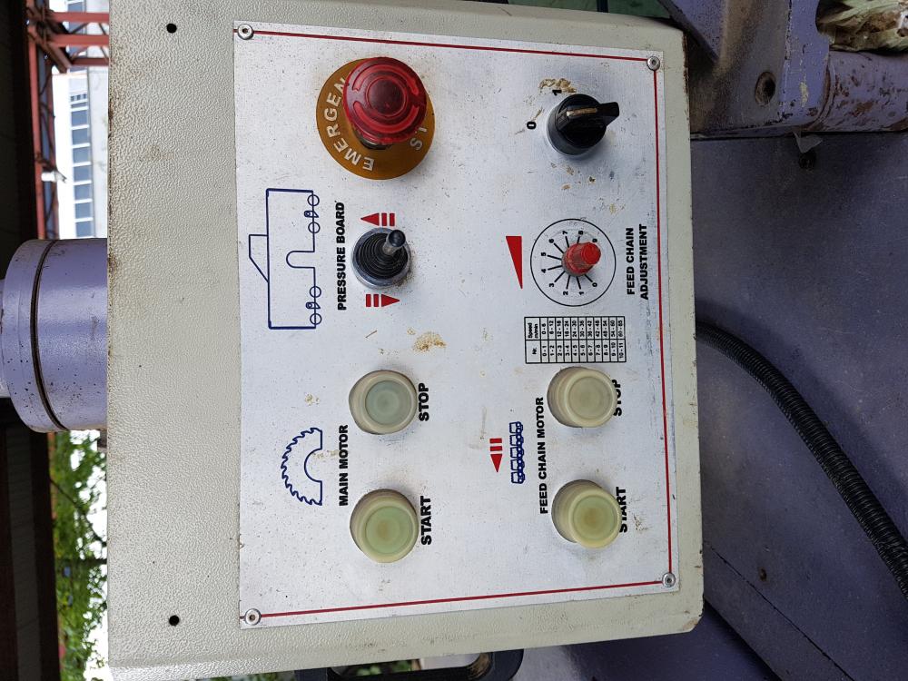 Predam rozmietaciu pilu znacky Üstünkarlı. sirka pasu 400mm vyska rezu do 160 mm hriadel 80mm max pilovy kotuc 450 mm hlavny motor 55 kw posuv 2.2 kw