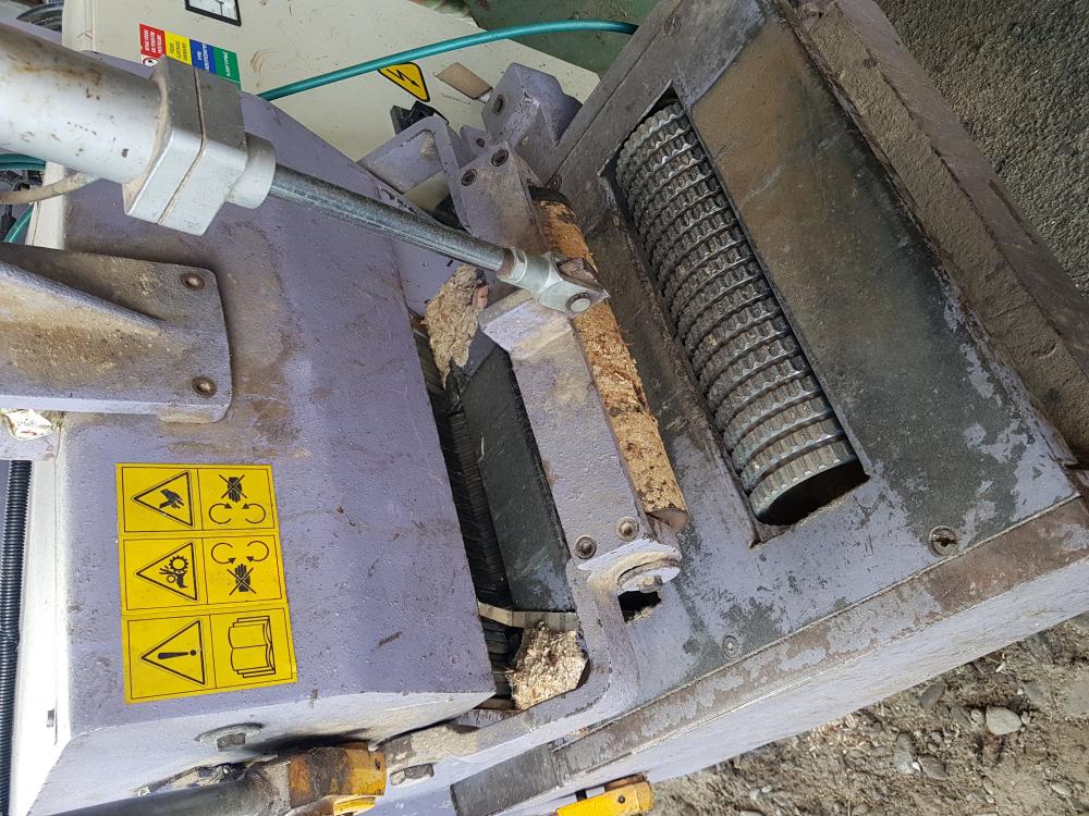 Štípací automat Posch K450, cca 3500Mh, motory 2x30kW, vysoký výkon. Cena 580.000Kč rychlé jednání velká sleva. Podávací, vynášecí, balící zařízení součásti.
