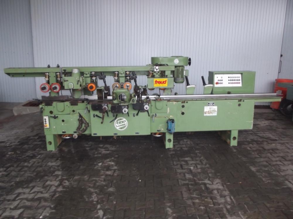 Predám profilovaciu štvorstrannú frézku Weinig so 6 hlavami v konfigurácii spodná-pravá-ľavá-pravá-horná-spodná. Max. obrobok 180x130mm, vretená fi.35mm, planulá regulácia posuvu 7-18,5m/min, každé vreteno so samostatným motorom, celkový príkon 25kW. Treba vidieť, výborný stroj! Cena bez DPH: 4700