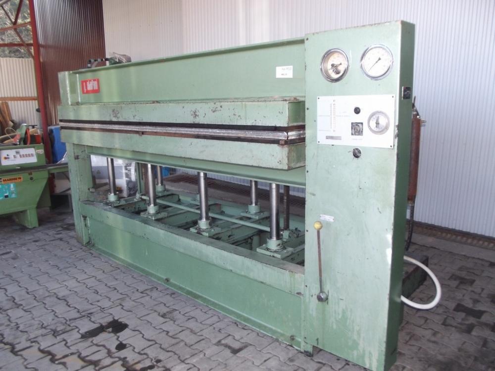 Predám silný taliansky dyhovací lis G.Stefani s možnosťou pripojenia na okruh teplonosného média vody. Plocha 3000x1300mm, 8 piestov 70mm generujúce silu max. 4kg/cm2 = max. 150 ton. Otvorenie 400mm. Cena 6700 Euro bez DPH, ponuka platí do vymazania inzerátu.