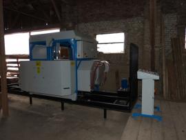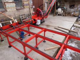 Dvoukotoučová Úhlová pila PP-550 Úhlová pila vyřezává přímo z kmene kulatiny požadované čisté řezivo,rozměry řeziva si navolíme na panelu pily a můžeme tak řezat hranoly-vazby-prkna-latě a podobně.