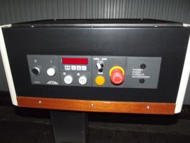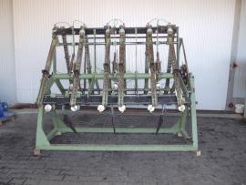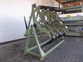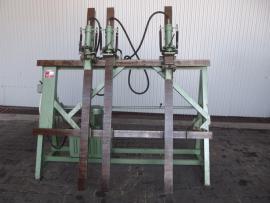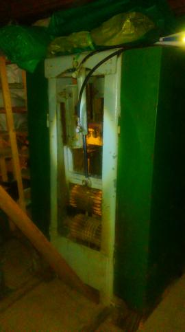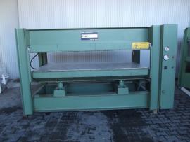 Predám 3-plošný turniketový rámový lis ovládaný pneumaticky, sila regulovaná výškou tlaku z kompresora, potreba cca. 8-11bar. Manuálne otáčanie, vhodný na výrobu škárovky. Má 3 plochy o veľkosti 2300x1200mm každá po 6 zvislých piestov a 3 pneumatických prítlakoch. Všetko plne funkčné. Cena bez DPH: 4600 Euro.
