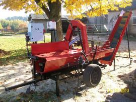 Prodám Nový Automat se zárukou k výrobě palivového a krbového štípaného dřeva APD-450-automat Sestavu Stacionární sloužící k přípravě palivového a krbového dřeva ve velkém množství. Toto zařízení spojuje v jednom pracovním cyklu řezání dřeva s pomocí Harvestorové řetězové pily a jeho štípání s pomocí beranidla a vynášecího pásového dopravníku. Výkon Automatu je 5-8 prms za hod záleží na průměru kulatiny. Délka cyklu štípání s návratem válce (sek. ): 3/6, Rozměry stroje: 2350 x 1250 x 1800. Uvedená váha stroje bez podávacího stolu 1300kg Data technická: Max, průměr kmene do 450, mm Nastavení délky špalků 250-620, mm Štípací tlak 25 tun. Pohon elektrický Uvedená sestava obsahuje, , Štípací klíny- 2-4-6-8. Regulace výšky klínu hydraulicky. Tlak 25 tun. Podávací stůl kulatiny-základ.Je možné i větší stůl na kulatinu více informací na našich www stránkách.