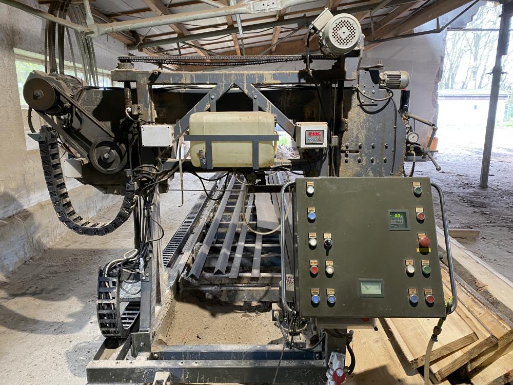 Průměr zpracovávané kulatiny - 1 150 mm hmotnost zpracovávané kulatiny - do 5 tun.Řezná délka 6 m Pilové pásy Stelitové - 5 600 x 60 x 1,0 x 25 mm Zásobník kulatiny z podáváním kmene na pilu rozměr 2200 x 3 000 x 790 mm Pásový dopravník pro odsun řeziva