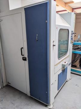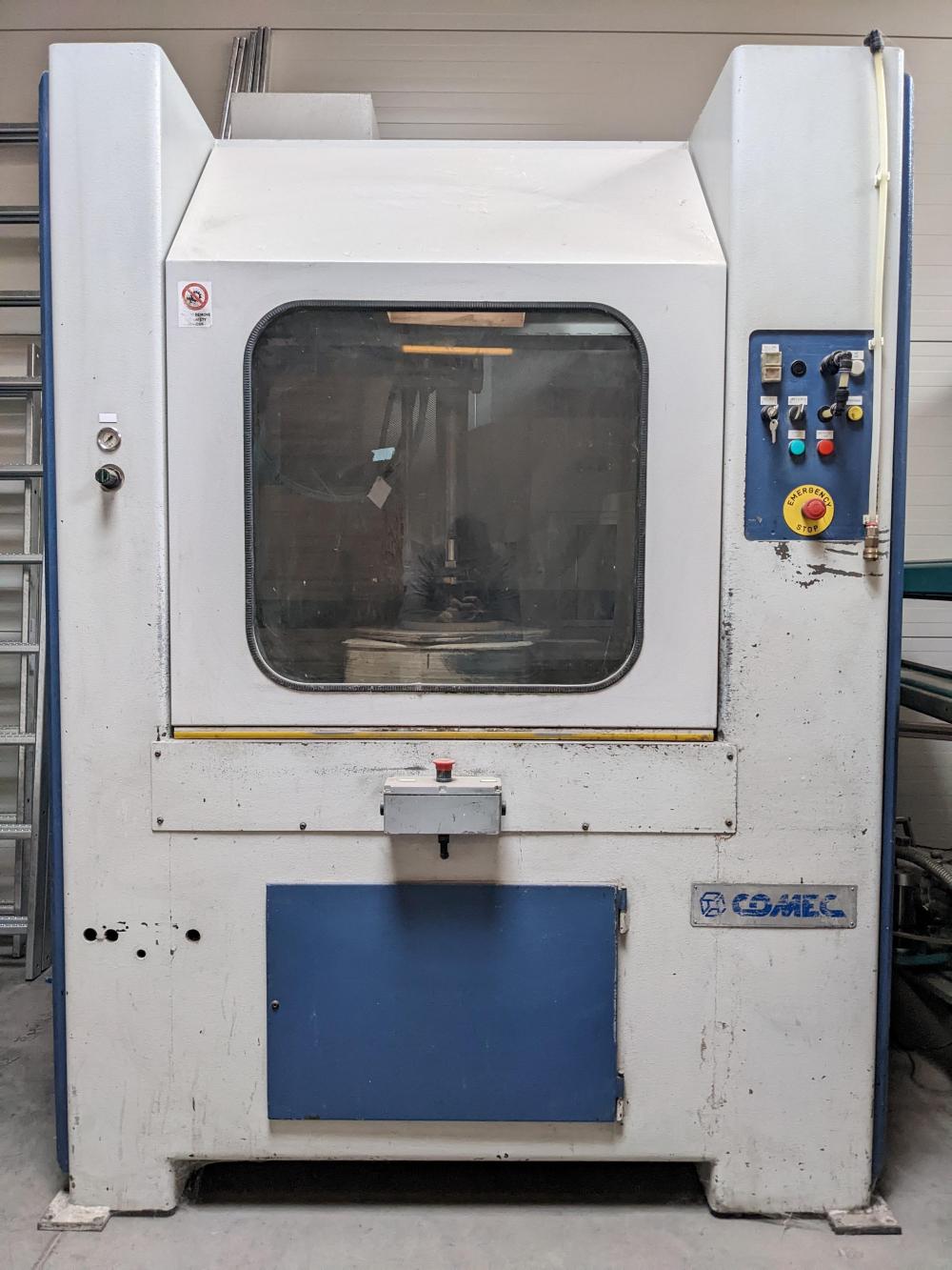 Ponúkame na predaj FGS/1T+CAB Karuselovú frézku s otočným stolom a ochrannou kabínou od talianskej firmy COMEC. Stroj bol vyrobený v roku 2005 a je možné ho použiť na profilovanie, tvarovanie panelov na báze dreva, sedadiel, operadiel, rôznych políc a tvarov z rastlého dreva alebo z laminátov, preglejok, plastov, atď. Robustná konštrukcia umožňuje naraz odoberať veľké množstvá materiálu jedným prechodom stroja a zároveň zachovať optimálnu kvalitu povrchu obrobku. Ak sú obrobky prichytené na sebe, tak je možné obrábať aj viacero kusov naraz. Finálny tvar obrobku je získavaný kopírovaním profilu vymeniteľnej šablóny, ktorá rotuje okolo svojej osi. Stroj je v zachovalom stave.