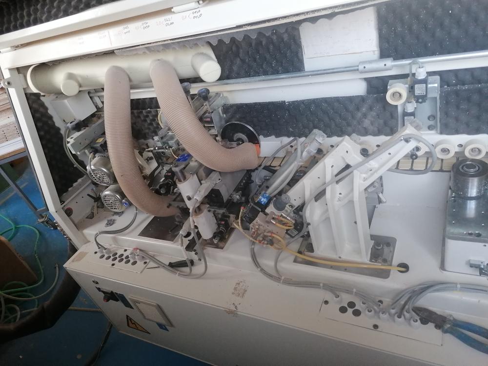 Technická data : -podávacia rychlost 8m/min -výška dielca 8-50mm -max. hrúbka hrany 3mm -nanášanie lepidla válečkom -kapovanie pásky -dvojmotorové kapovanie -rádiusové frézky -rádiusové cidliny -leštící kartáče