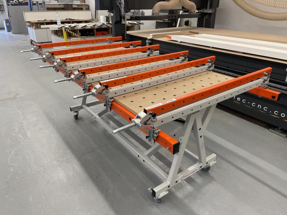 Stôl pozostáva z 5 bežcov z hliníkových profilov, nastaviteľných podľa momentálnej potreby obrábania.