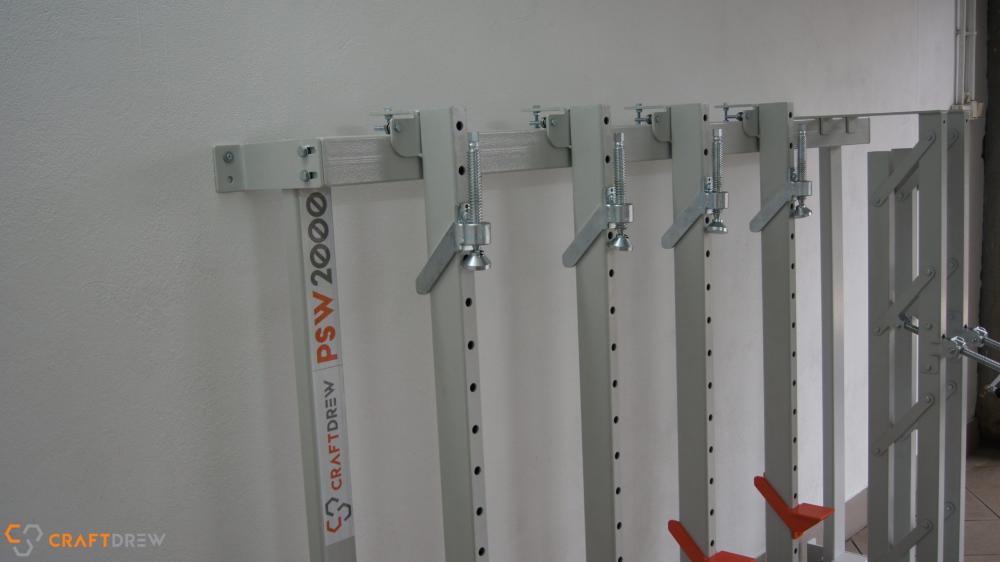 Stolársky lis SKP1100 s použitím vyrovnávacích svoriek, ktorých najväčšou výhodou je súčasné stláčanie a vyrovnávanie lepeného materiálu. Zariadenie kombinuje funkcie lisu a pracovného stola. Svorky sa dajú ľahko odstrániť z rámu bez odskrutkovania skrutiek, vďaka čomu lis rýchlo premeníme na pracovný stôl. Odstránené svorky je možné umiestniť do špeciálneho zásobníka umiestneného v spodnej časti lisu. Horný rám so svorkami možno nakloniť, aby sa zmenšil priestor, ktorý zaberá.