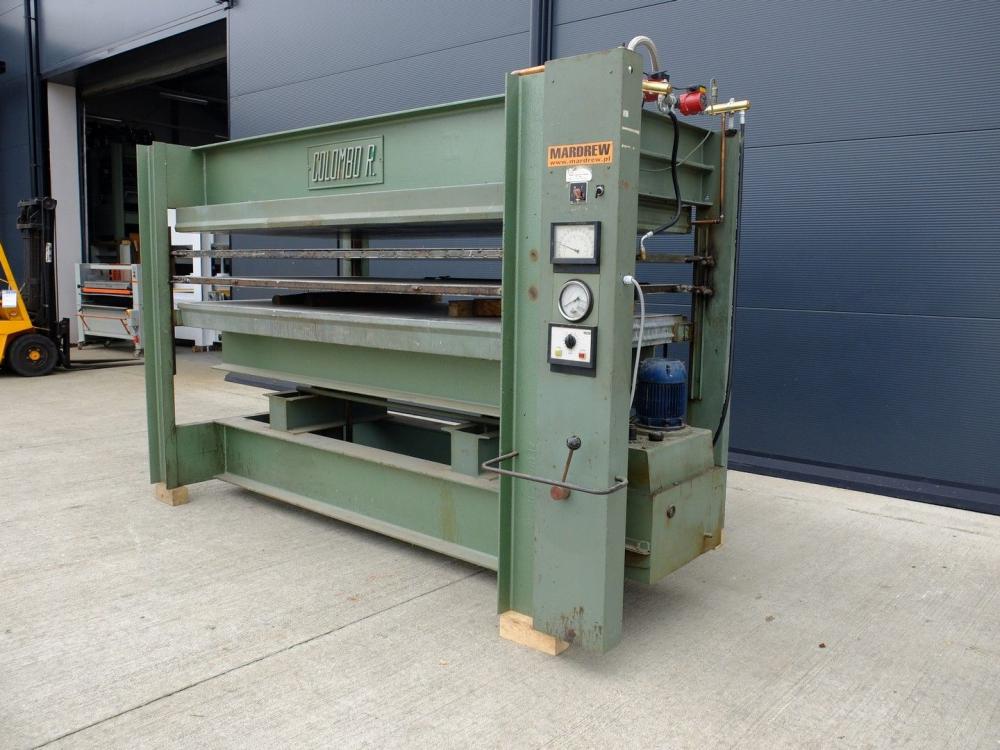 Predám dyhovací lis Colombo veľkosti platne 2500x1000mm, lisujúci na studeno, 2 piesty. Otvorenie 400mm.