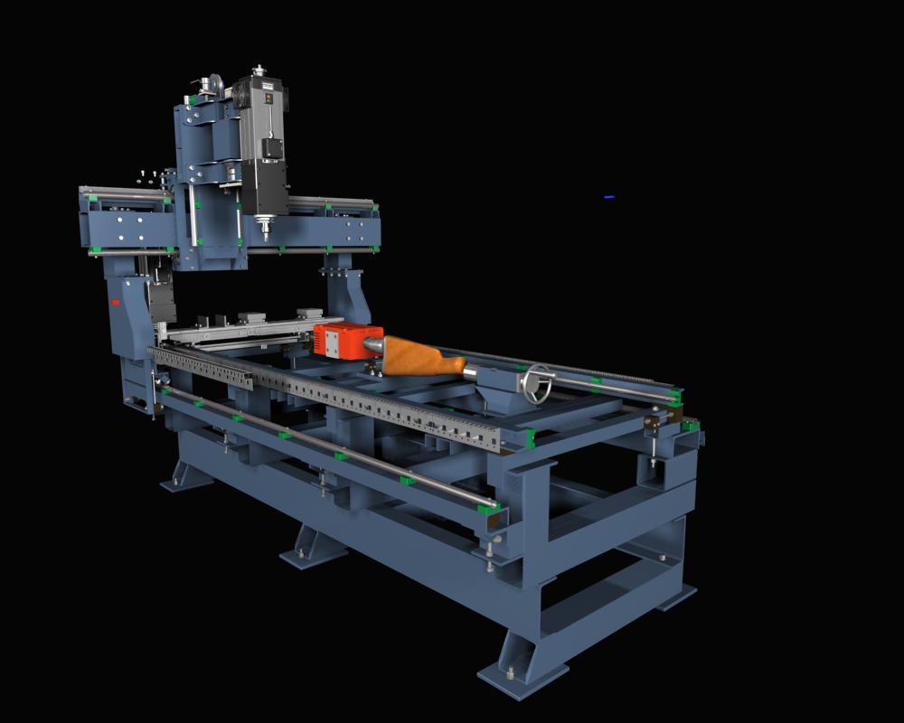Vysoko otáčkové vreteno s možnosťou automatickej výmeny nástrojov, ktoré je potrebné dopracovať. Pohony osi X,Y- pastorok a hrebeň. Z-ová os zatiaľ nemá pohybovú skrutku.