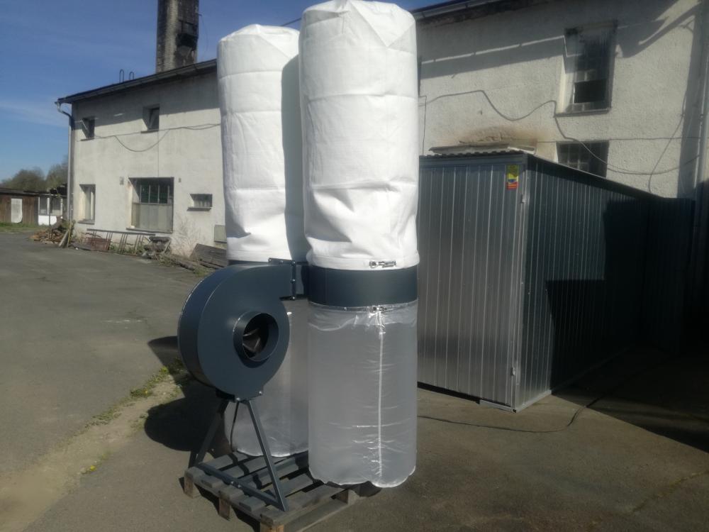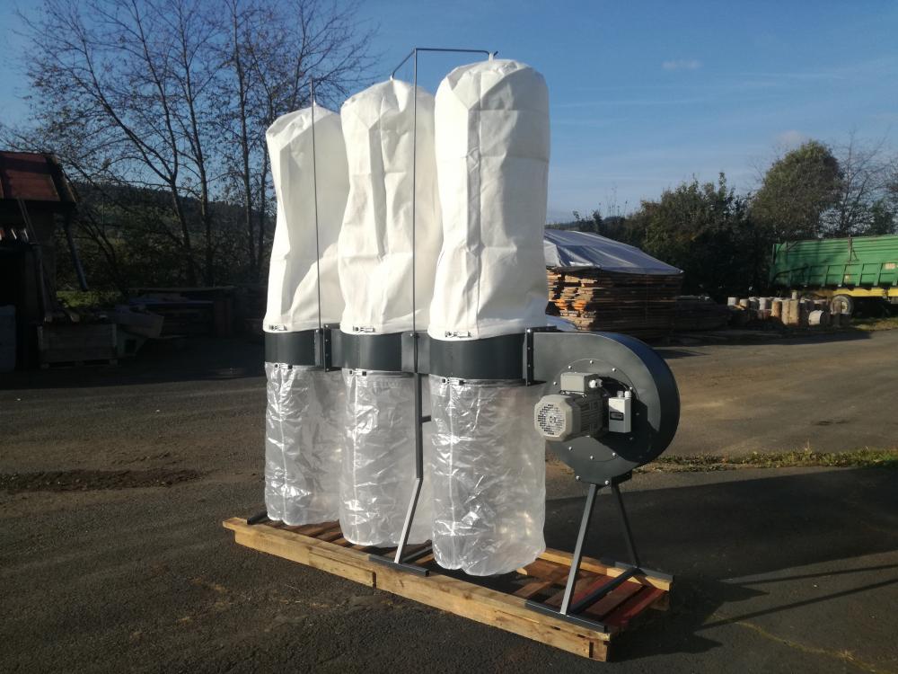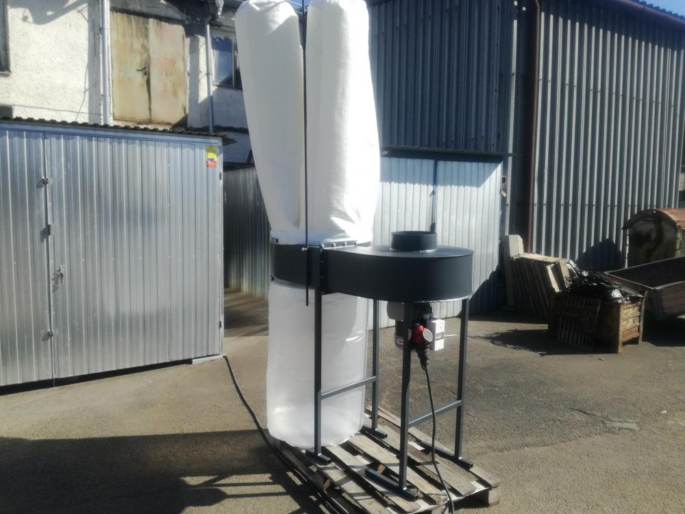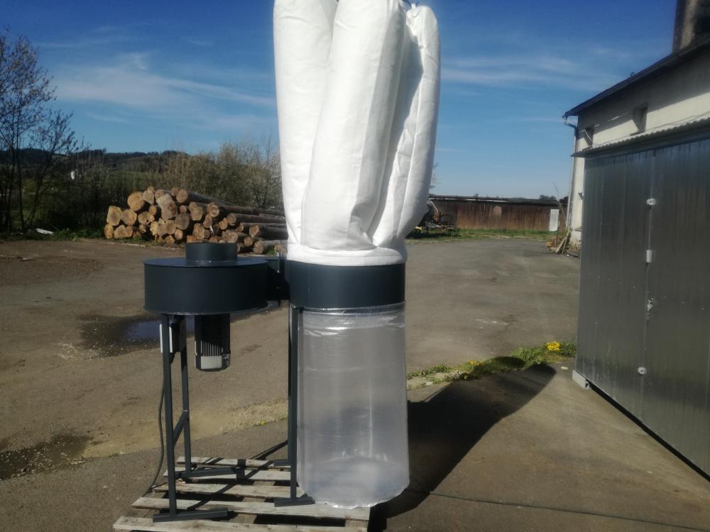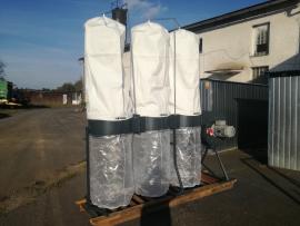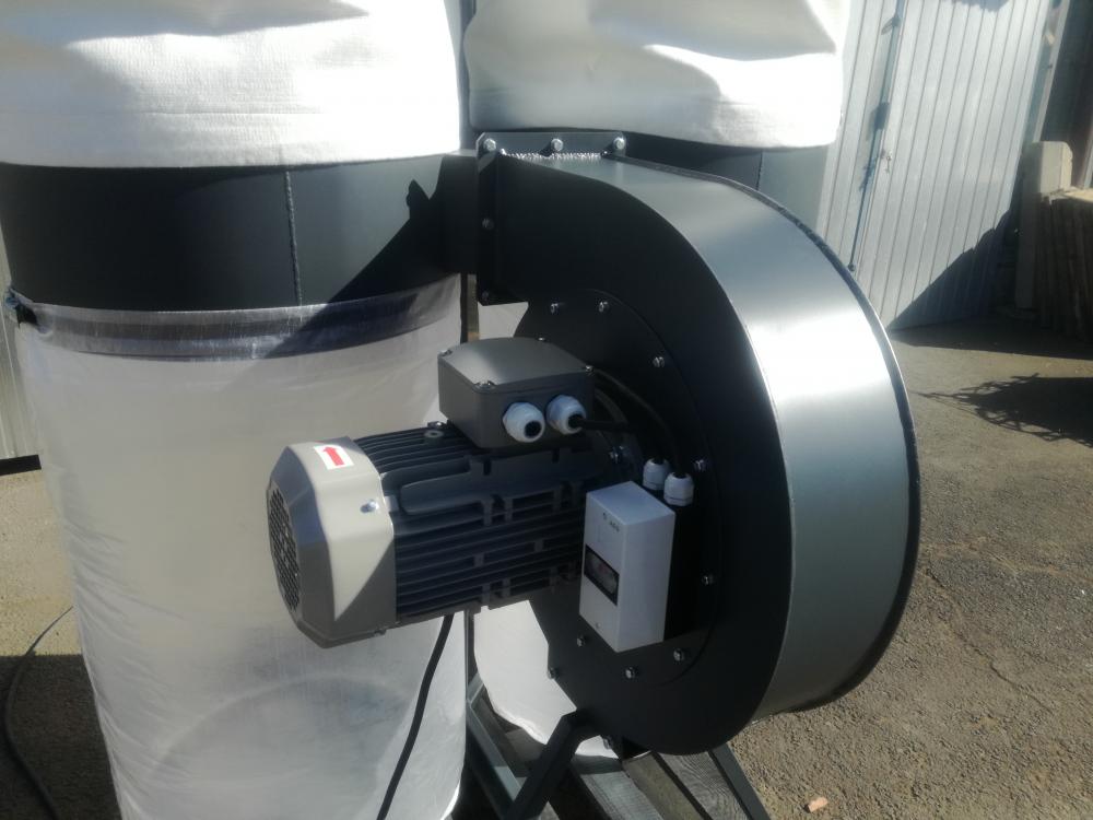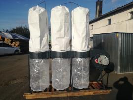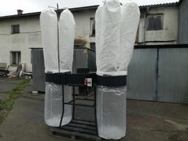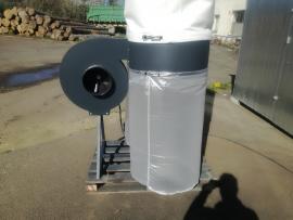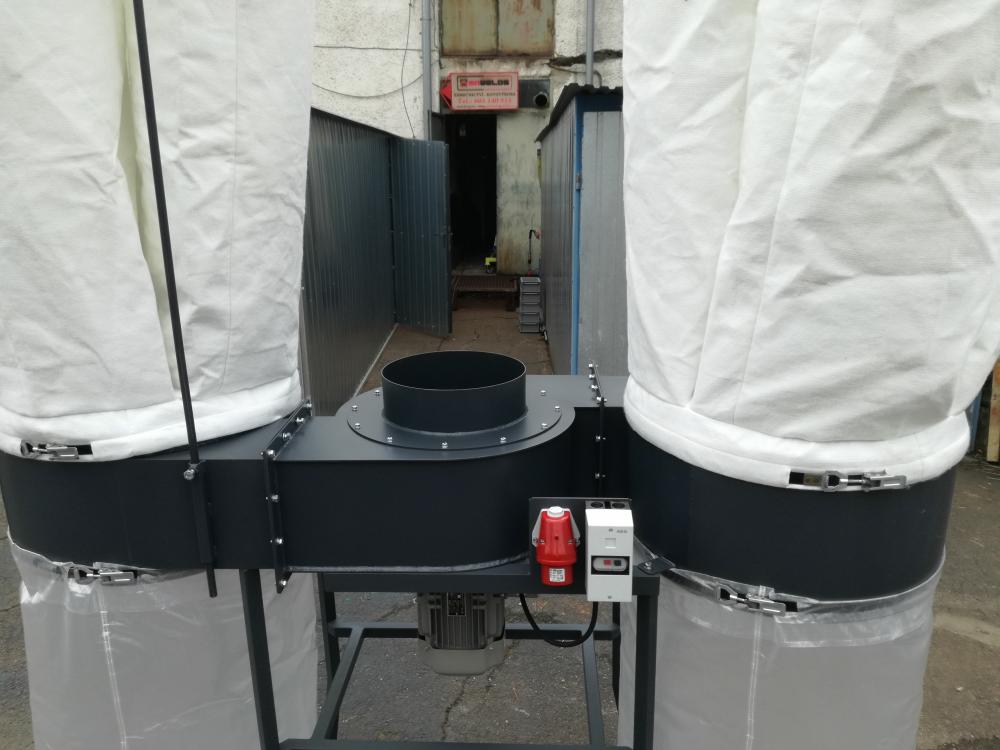 Vysoce výkonné dvoupytlové odsávání O7900, pro odsávání až od několika strojů současně. Pro srovnávačky, rozmítací pily, čtyřstranné frézy, okenní centra, jako centrální odsávání atd. Díky hadicovým filtračním vakům je odsávací kapacita 7900m3/h, max. odsávací rychlost 32m/s, filtrační plocha 12m2, připojovací sací hrdlo 300 mm, objem odpadních vaků 0,66m3, pevný svařovaný rotor, robustní provedení, vrtule z tloušťky 4mm, lopatky 3mm, plášť ventilátoru 3mm. Nový typ hliníkového kvalitního přírubového elektromotoru 3kW - 2900 ot/min. Přívod 16A – 5 kolík. Odsává i drobné kousky dřeva a vlhké řezivo. Uvedená cena je za odsávání včetně 2 horních hadicových filtračních, a 2 dolních zesílených silonových odpadních vaků a kovových upínacích pásek. Rozměry - d. = 2000, š. = 700, v. = 2800.