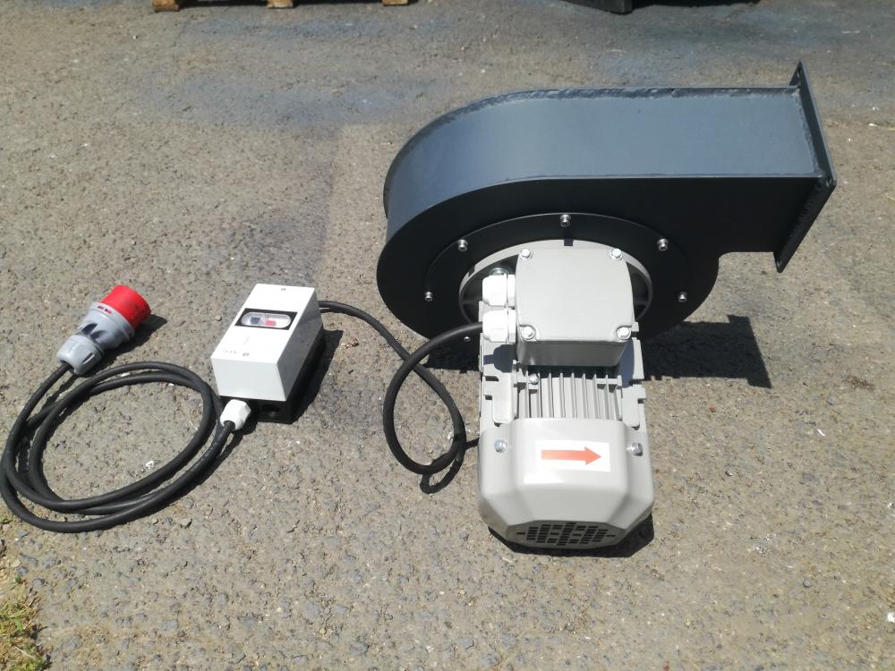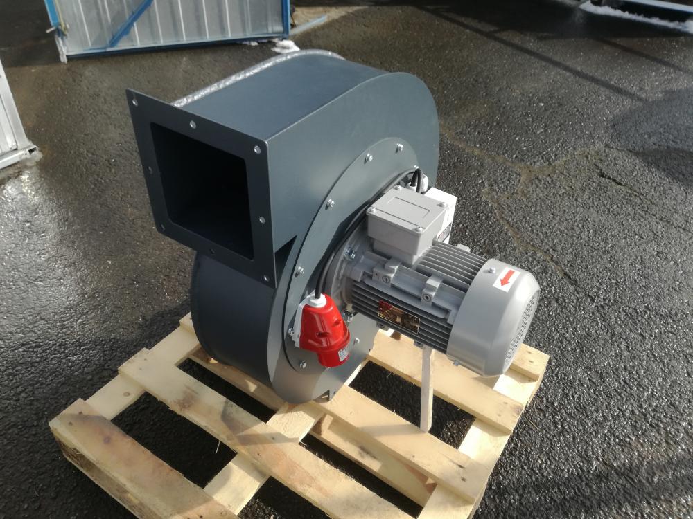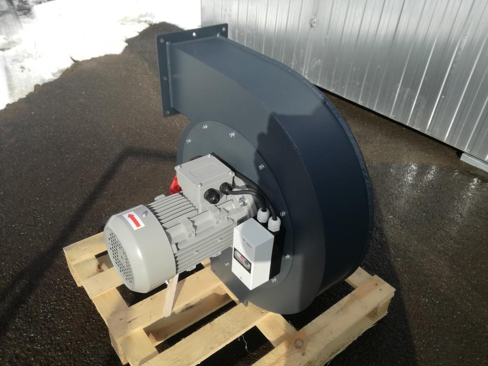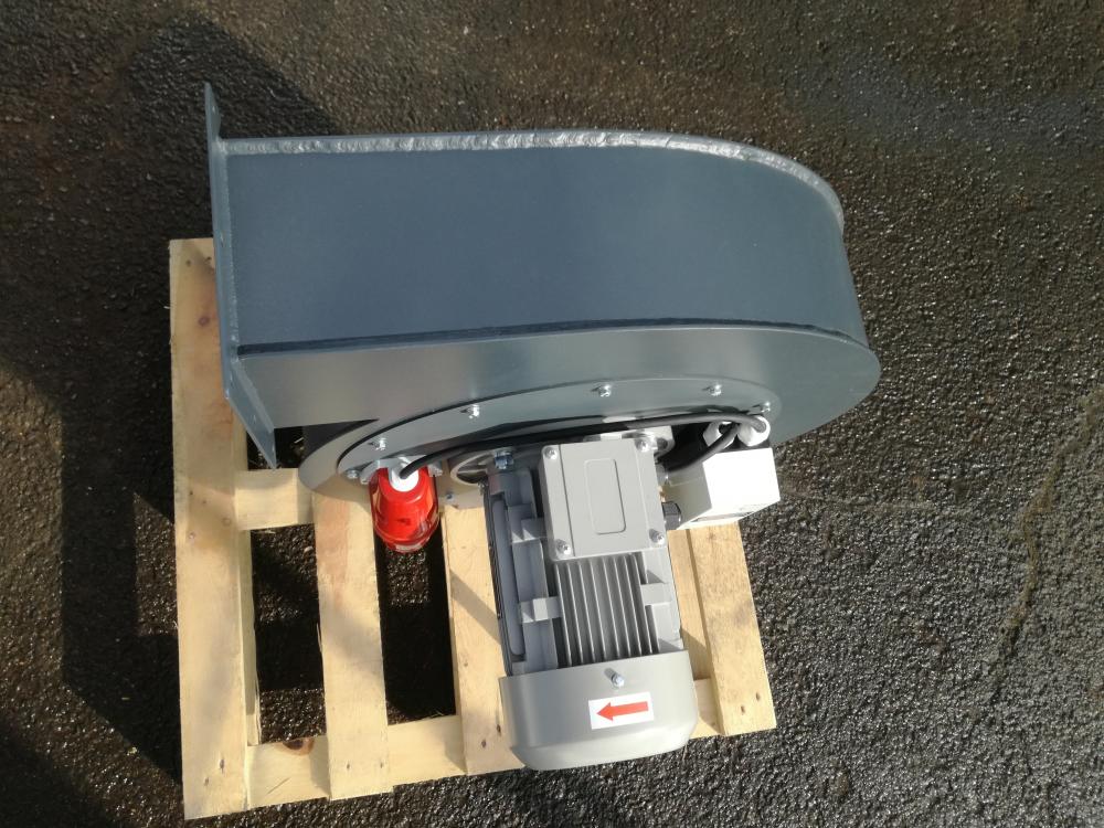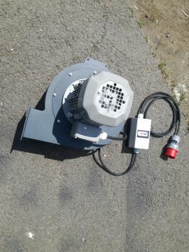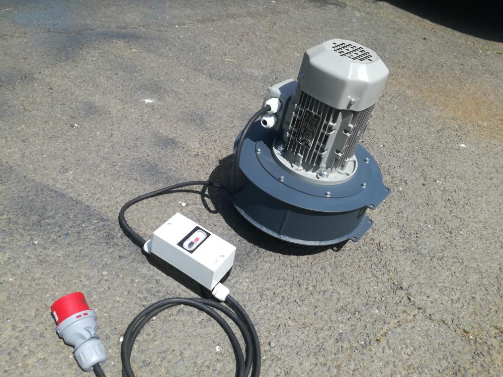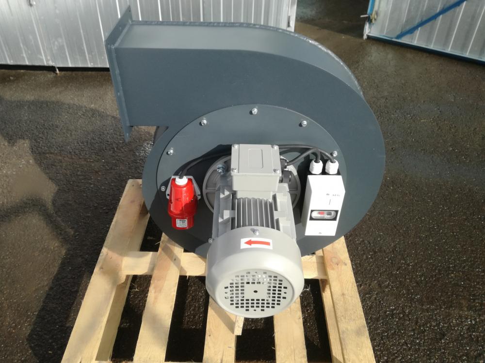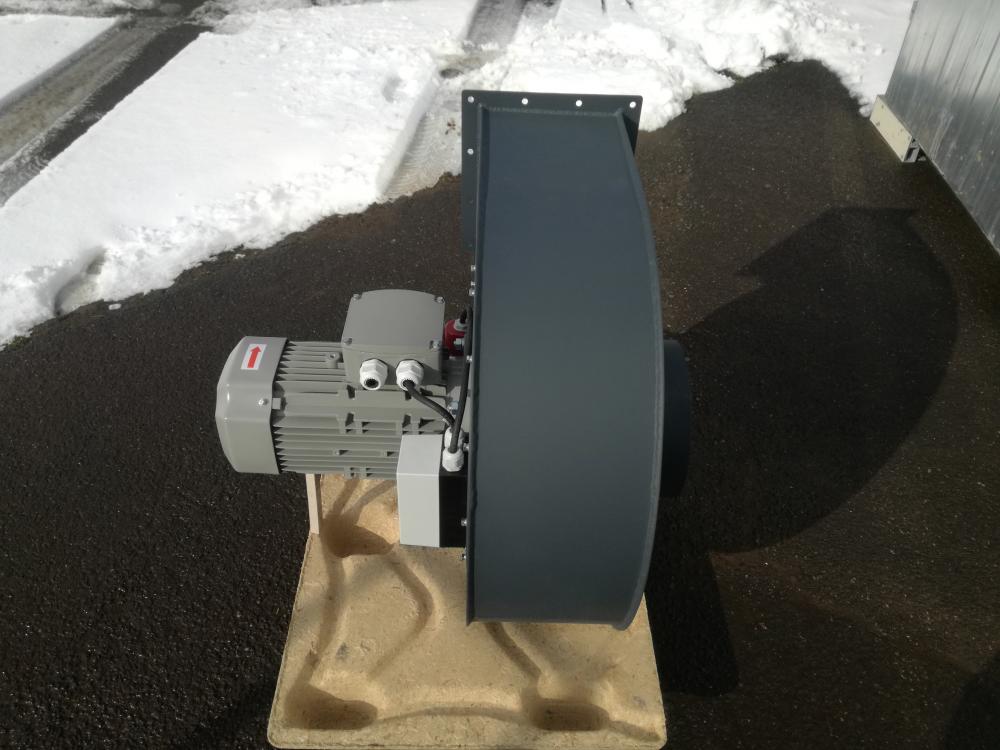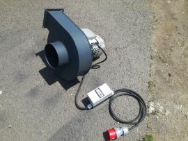 Transportní ventilátor V4600 - pro dopravu hoblin, pilin, zplodin ze svařování, vzduchu apod. do vzdálenosti až 20 m. Lze použít samostatně, nebo jako součást jiných strojů. Robustní provedení pláště, pevný svařovaný rotor vrtule z tloušťky 4mm, lopatky 3mm. Montáž na zem, zeď, nebo rám stroje pomocí úchytných otvorů ve spodní části ventilátoru. Podtlak na vstupu 2400 Pa, odsávací kapacita 4600 m3/hod., sací hrdlo průměr 250mm, výstup 160x160mm. Nový typ hliníkového kvalitního přírubového elektromotoru 3kW - 2900 ot/min. Přívod 16A-5kolík.