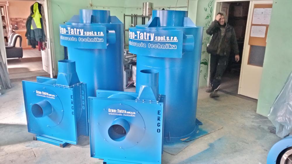 Trojcestná sušička v priemere 2m, dĺžka 4m. Pri 50% vlhkosti média usuší 500kg/h. Ukončená vetrákom s výkonom 15kW. Výstup z vetráka je 350mm. Cena 15000€.