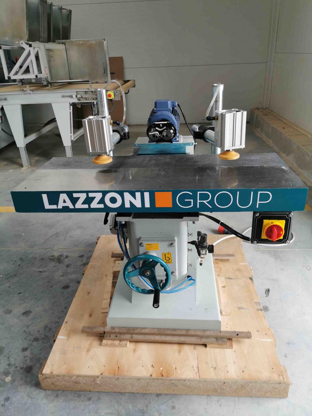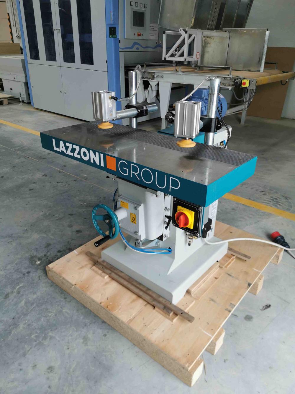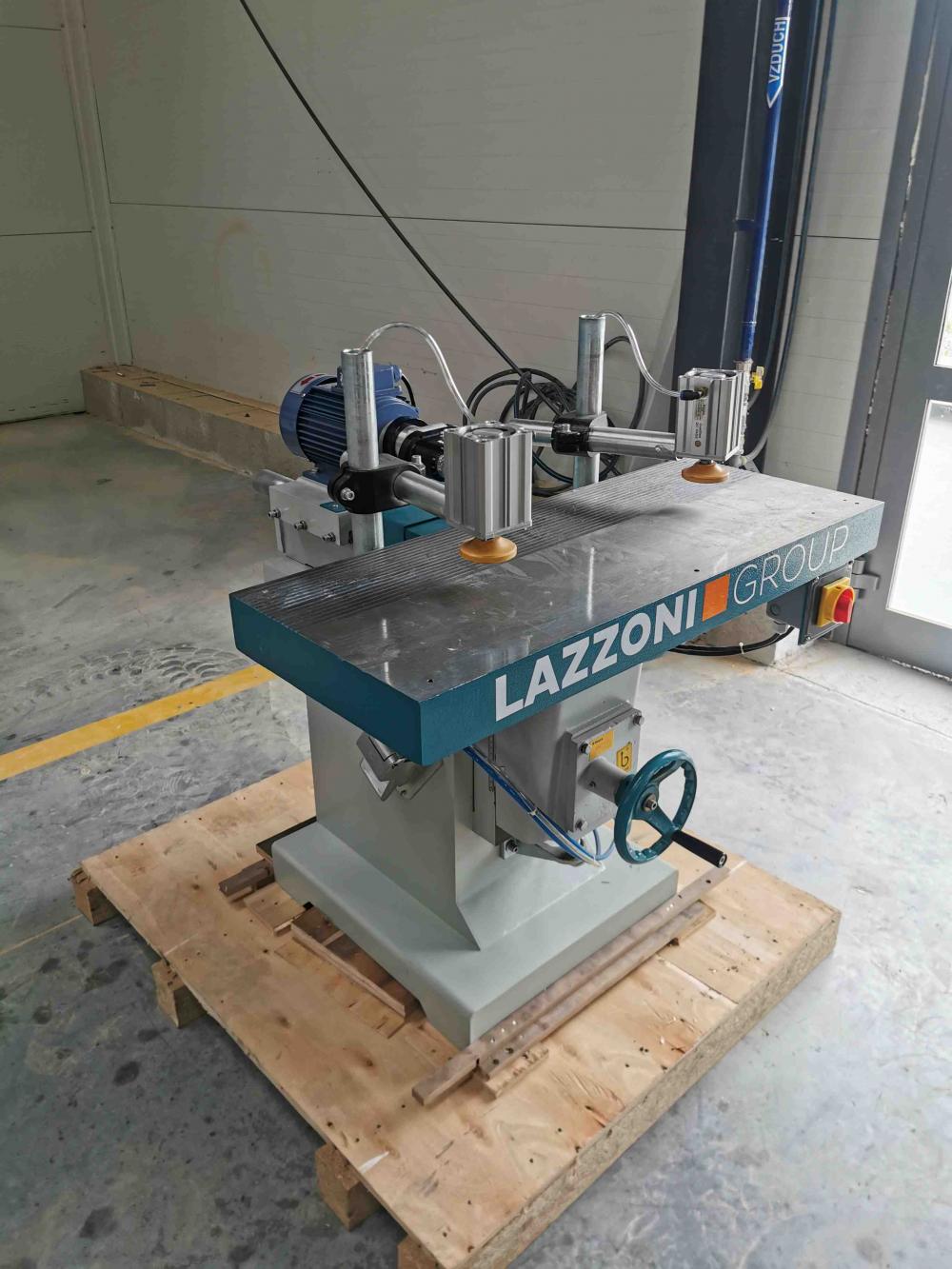 Lazzoni Group Single 1, nový stroj 2019, vŕtacia hlava s 3 vrtákmi ľubovoľne nastaviteľnými v rámci hlavy.