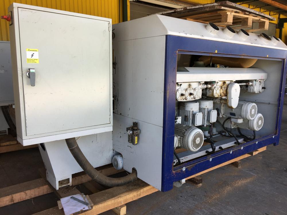 Poúkame na predaj 2 ks 4 stranej frézy. 5 x vreteno. Sk Machinery. KP5230GS. 4x 5,5 kw a 1x 7,5 kw. Drážkovaný stôl. Stroje v prevádzkaschopnom stave. Odpojeny 20.8.2020. Cena 17 000 eur. Dohoda na cene možná.