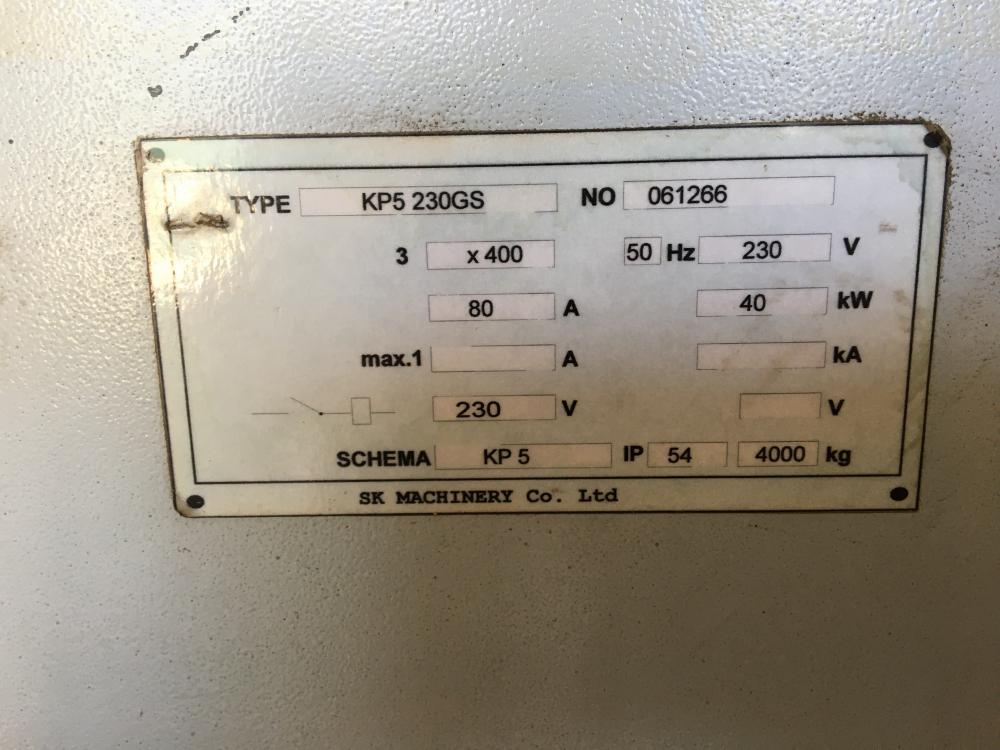 celkové rozměry 4,38*1,86*2,06 m, hmotnost 4600 kg, napětí střídavé - 3x400V, příkon 37,25 kW, Max.proud - 80A, fáze 3, motorický posuv. Výrobce JKS&Trade Moravia s.r.o.