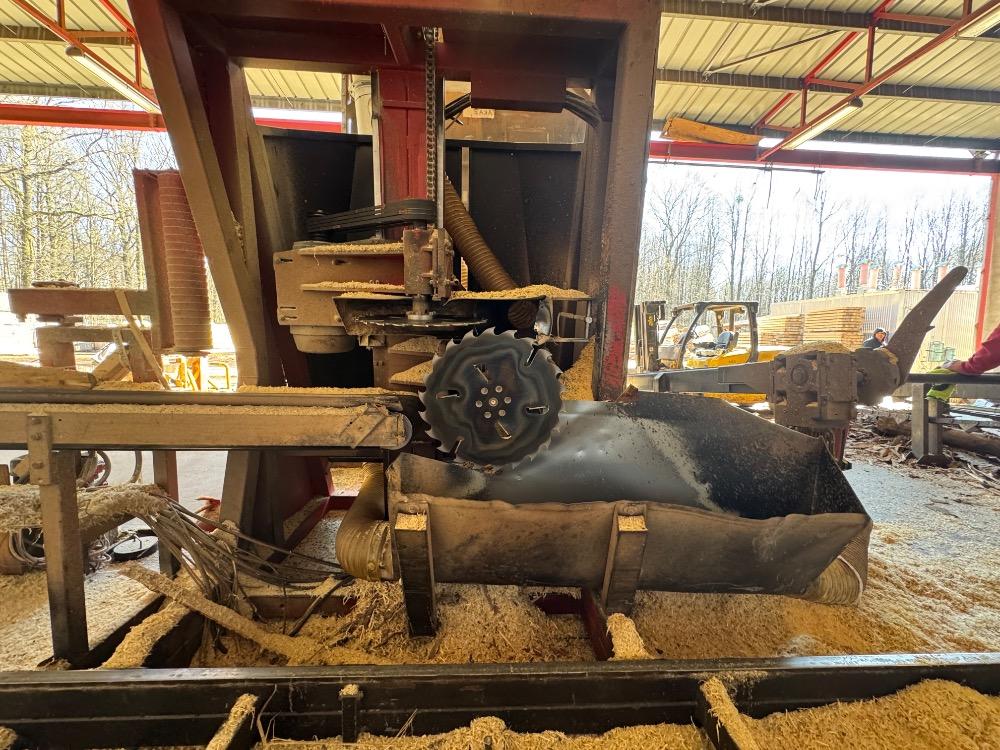 Reže kmene až do dĺžky 12m, priemer 1m. Max. rezaný rozmer 21x21cm. Odsávanie od obidvoch kotúčov.