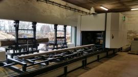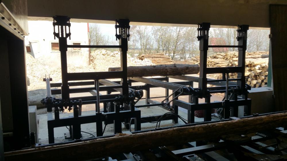 Fréza na opracovávanie guľatiny aj hobľovanie hranolov s 12m dráhou.Guľatina je opracovaná na rovnaký priemer od 14cm do 32cm s možnosťou pozdĺžneho žľabu.Rok výroby 2010.