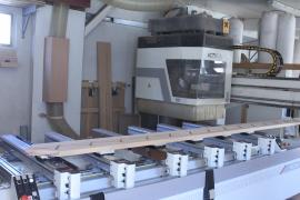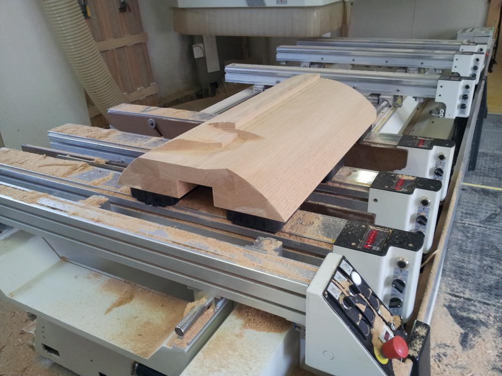Fréza na opracovávanie guľatiny aj hobľovanie hranolov s 12m dráhou.Guľatina je opracovaná na rovnaký priemer od 14cm do 32cm s možnosťou pozdĺžneho žľabu.Rok výroby 2010.