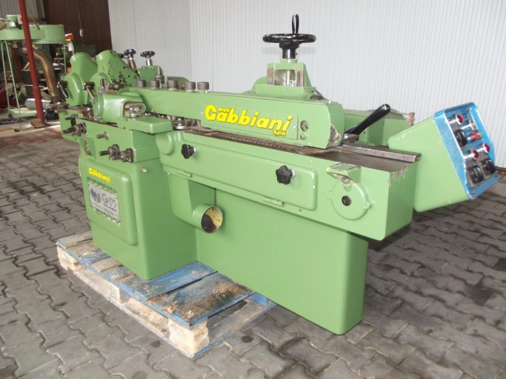 Gabbiani - 6-vretenová štvorstránka, max. obrobok 135x70mm, min. dĺžka iba 180mm!. Priemer vretien 30mm, obojstranný posuv s kardanovým prevodom, rýchlosť 4-24 m/min. plynulo regulovateľný, automatické mazanie, profilovacie hlavy regulovateľné vo všetkých smeroch, celkový príkon 14,8kW, dĺžka iba 2500mm! Výborný všestranný stroj vhodný najmä pre výrobu parkiet, podlahoviek, líšt alebo obkladov. Cena bez DPH: 5500 Euro