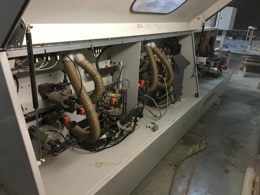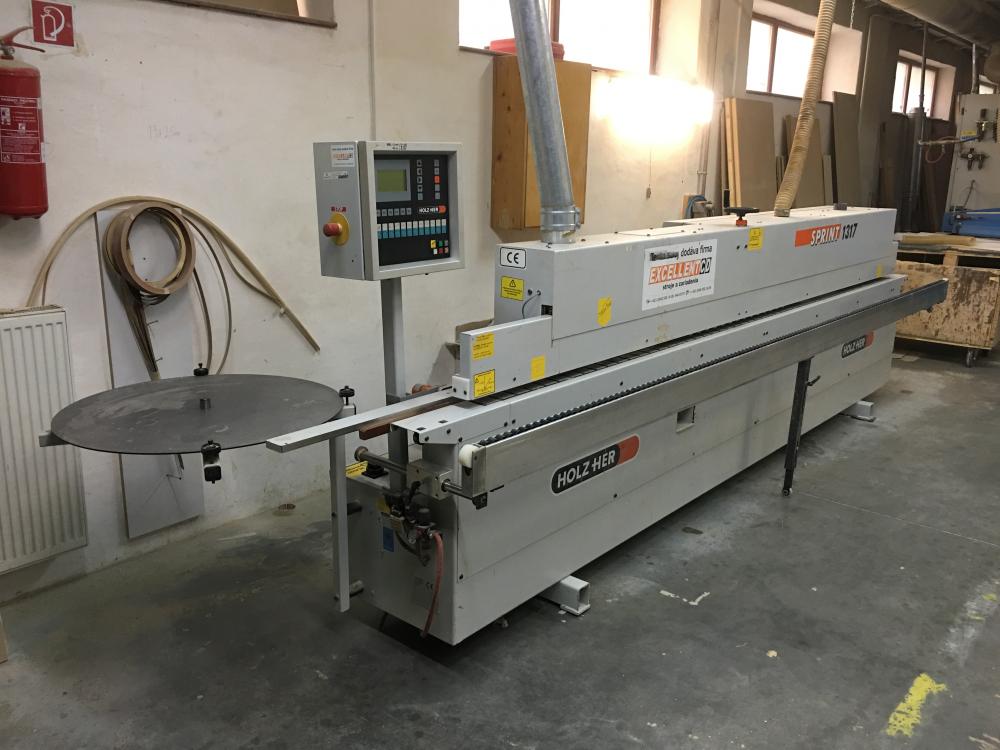 Predám jednostrannú olepovačku hrán HOLZHER SPRINT 1317, kompletná výbava stroja, predfrézy, olepovací agregát, max. výška hrany 44 mm, max. hrúbka hrany 8 mm, kapovací agregát,frézy radiusové, tvarová cidlina, plošná cidlina ..., veľmi dobrý stav a plne funkčný stroj,
