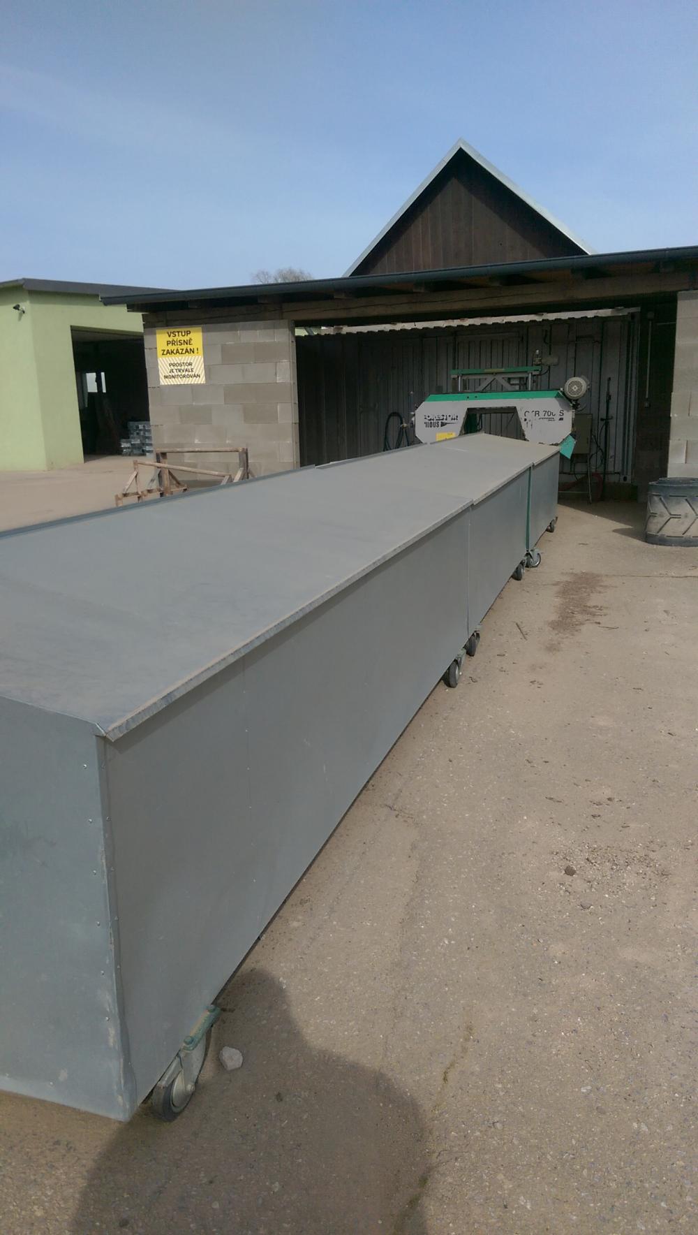 - Dopravník na posuv řeziva do pily: 6 m
