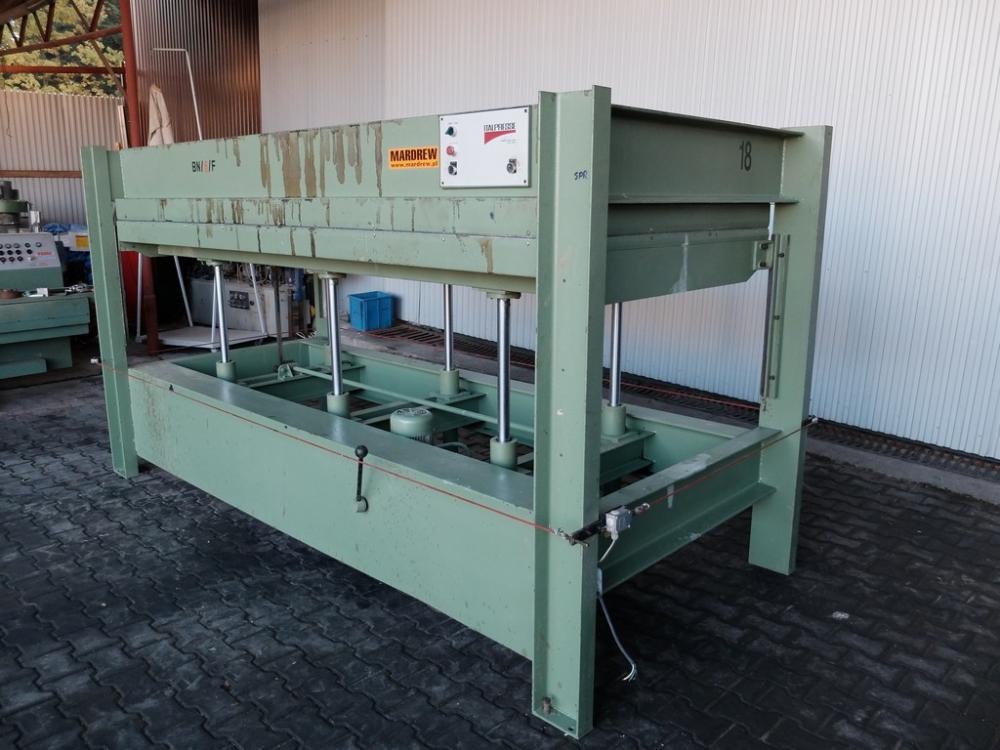 Predám silný taliansky dyhovací lis Manni s vodným vyhrievaním, možnosťou zapojiť na vyhrievacie médium do systému centrálneho vodného vykurovania. Plocha 3000x1300mm, 6 piestov 70mm. Otvorenie 430mm. Cena 6400 Euro bez DPH, ponuka platí do vymazania inzerátu.