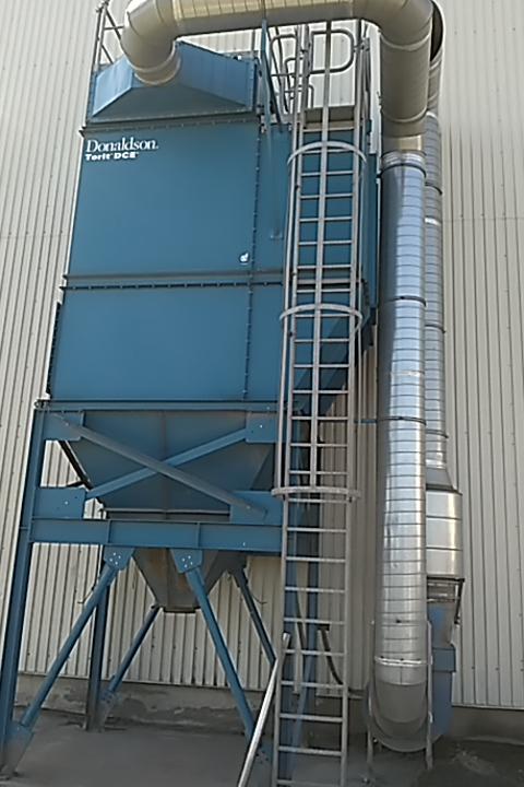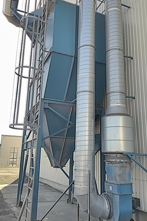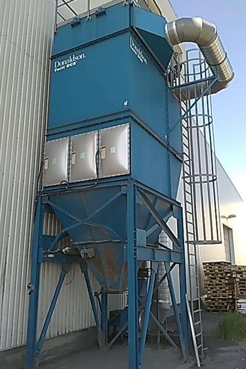 Nabízíme odsávání s filtrací, systém pulsních samooprašovacích filtrů - Doaldson - ventilátor (18,5 kW) filtrační jednotka obsahuje 81 ks filtračních rukávců (délka 3063 mm a průměr 152 mm) z materiálu polyester Duralife Oleo/Hydrophobic Anti-static (odolné vůči mírně vlhkému a/nebo lepivému prachu, v antistatické úpravě pro výbušné prachy). Filtrační plocha je 121,5 m2, výška včetně zábradlí nahoře je 7395 mm, šířka vč. výstupního žebříku cca 2875 mm, hloubka 3283 mm, celková hmotnost cca 2640 kg. Odsávání o výkonu 15.000 m3/hod. r.v.2009. Cena 460 000,-Kč + DPH