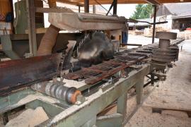 réza na opracovávanie guľatiny aj hobľovanie hranolov s 12m dráhou.Guľatina je opracovaná na rovnaký priemer od 14cm do 32cm s možnosťou pozdĺžneho žľabu.Rok výroby 2010.