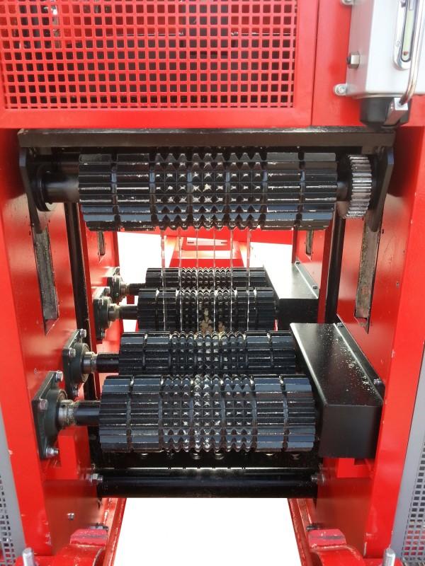 odebírač prken, pohon kulatiny posuvu oboustranný