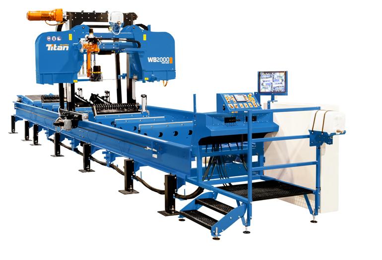 Všechny stroje TITAN jsou modré, aby se odlišily od dobře známých pil Wood-Mizer s úzkým pilovým pásem.