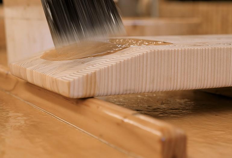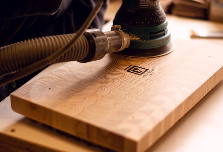 Jakmile je lepení hotové, jsou kusy poslány do srovnávačky, která odstraní lepidlo a dokonale povrch začistí. Odtud to putuje ke stolové pile k rozřezání na dvoupalcové latě. Tyto kusy postupují ke druhému lepení, aby se získal konečný povrch složené kresby krájecích prkének. Pak musí projít jemnou tloušťkovou bruskou a konečným zbroušením a zaoblením hran. Posledním krokem je nanesení tří vrstev (dvě vrstvy minerálního oleje a jedna vrstva vosku) a končí to zabalením pro přepravu k zákazníkům.